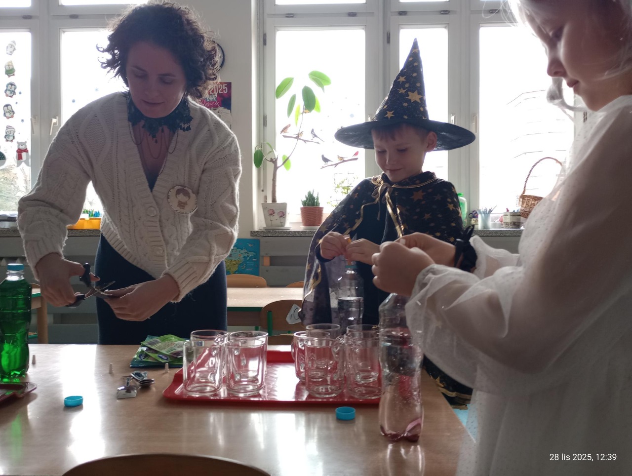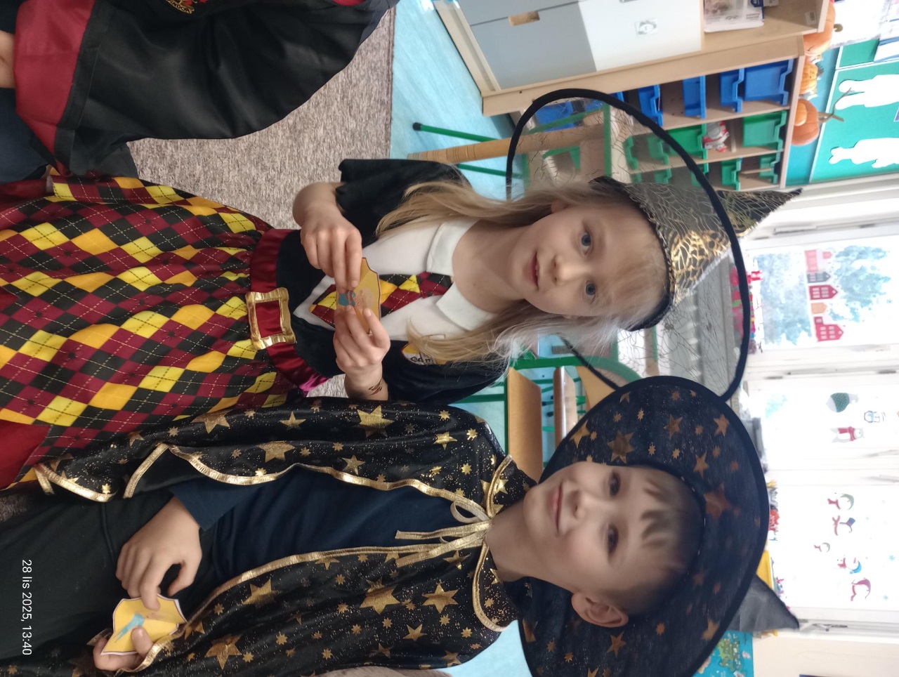 W zerówkach odbyły się wyjątkowe Andrzejki, które w tym roku przeniosły dzieci do świata czarodziejów i czarodziejek. Od samego rana panowała magiczna atmosfera – w salach pojawiły się kapelusze, różdżki, gwiezdne dekoracje, a mali uczestnicy chętnie wcielali się w role małych magów.