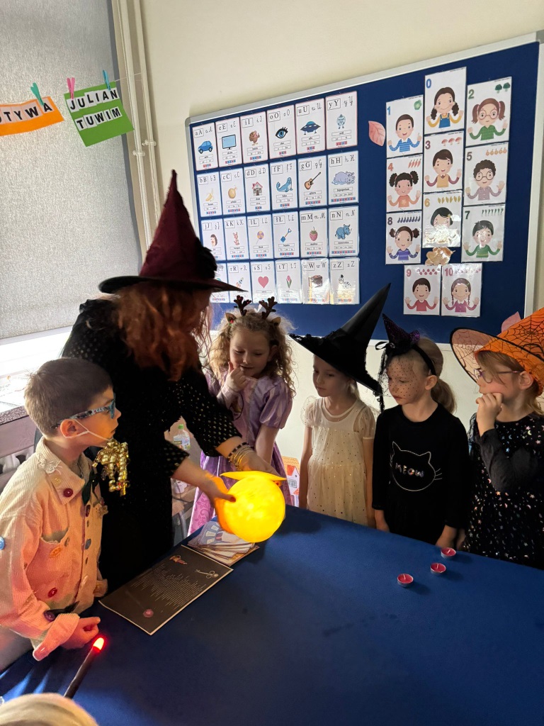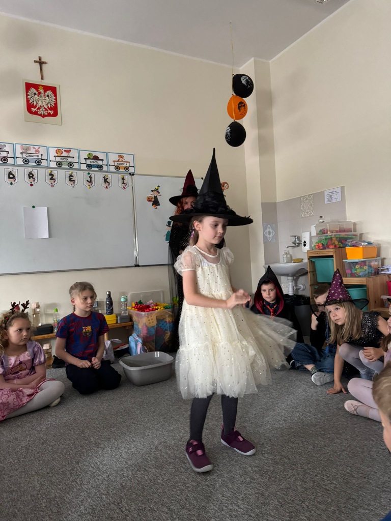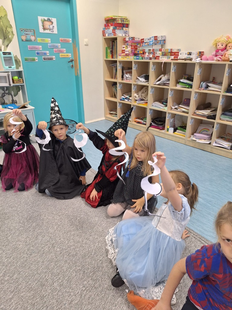 Zerówkowicze świetnie bawili się także podczas magicznych tańców, zabaw ruchowych i czarodziejskich konkurencji. Wspólna zabawa dostarczyła wielu uśmiechów i pozwoliła dzieciom poczuć się jak w prawdziwej szkole magii.