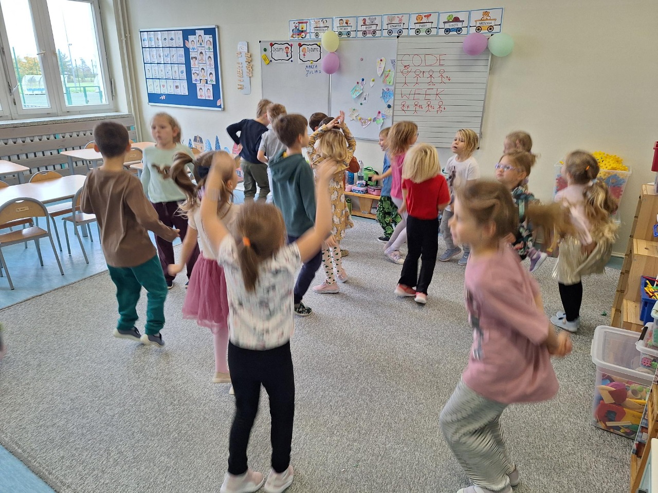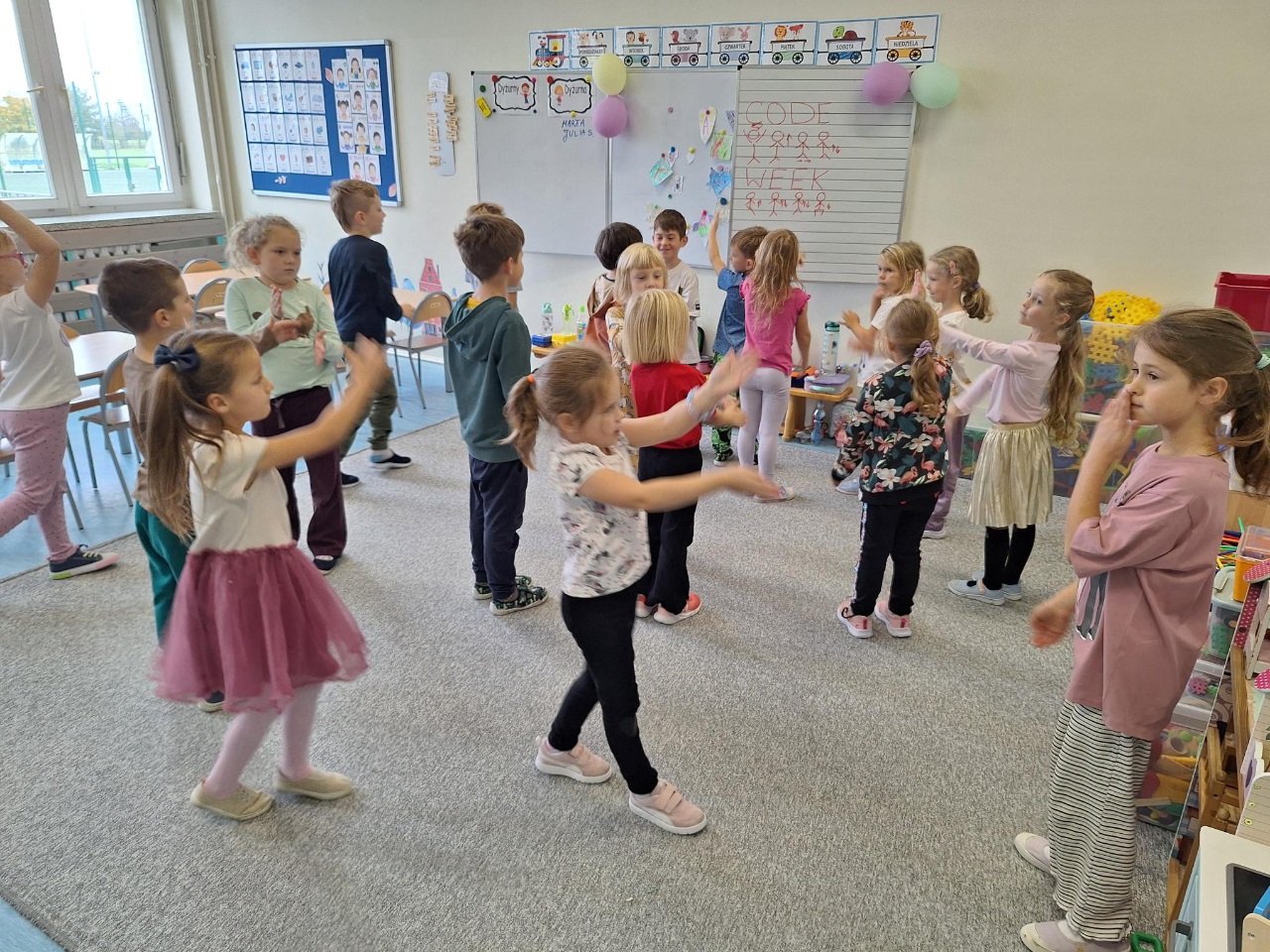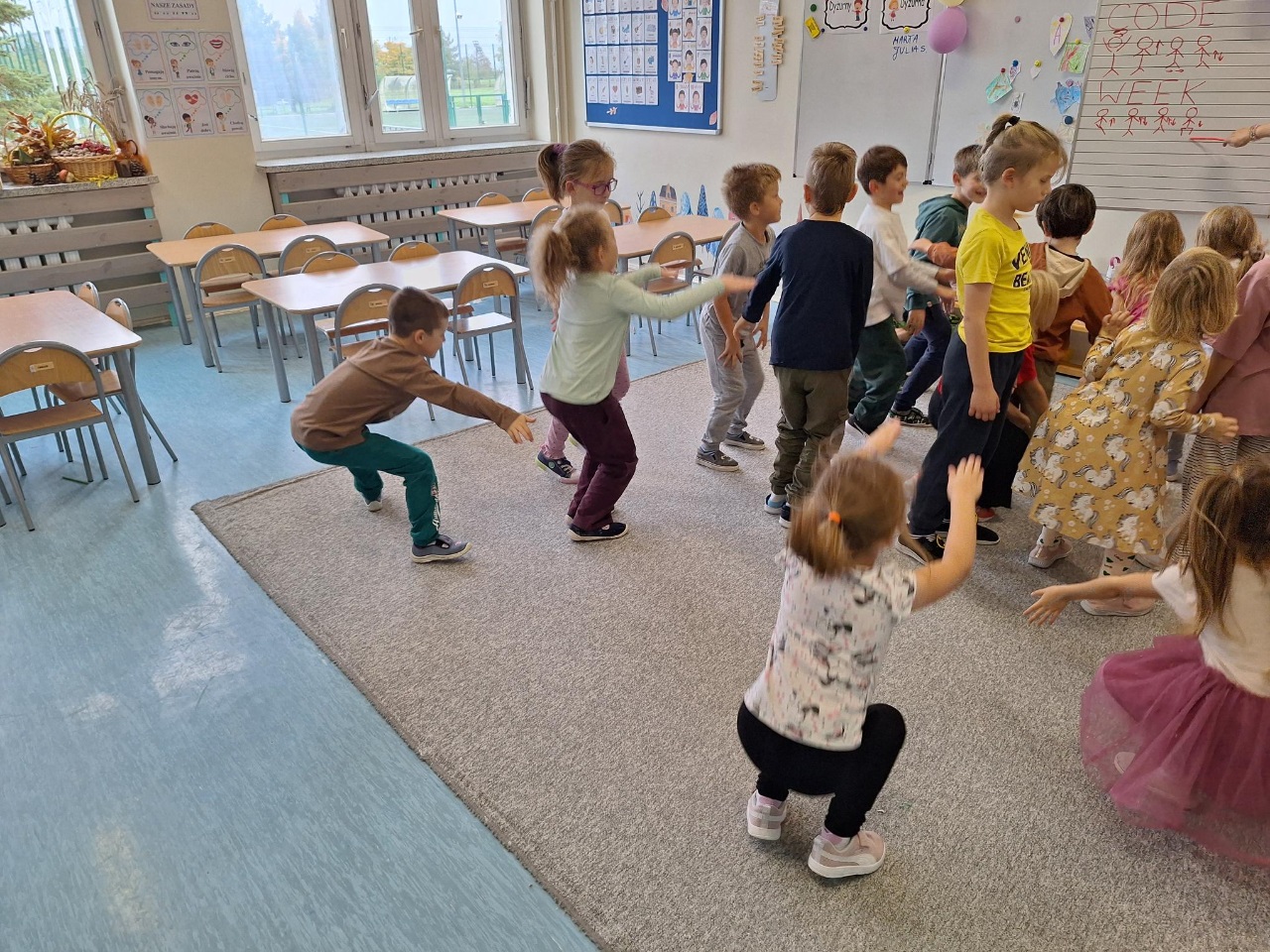 W październiku, przez dwa tygodnie dzieci z grupy 0b uczestniczyły w CodeWeek - Europejskim Święcie Kodowania. Zajęcia z kodowania polegają na nauce podstaw programowania i myślenia algorytmicznego w formie zabawy. Rozwija ono kreatywność, współpracę, logiczne myślenie i umiejętności rozwiązywania problemów, a także wyłapywanie błędów i ich poprawianie. Zerowkowicze min. układali dyktanda graficzne, puzzle tematyczne, programowali figury taneczne, kody strzałkowe i za pomocą robota geniBot oraz stworzyli własną grę planszową.