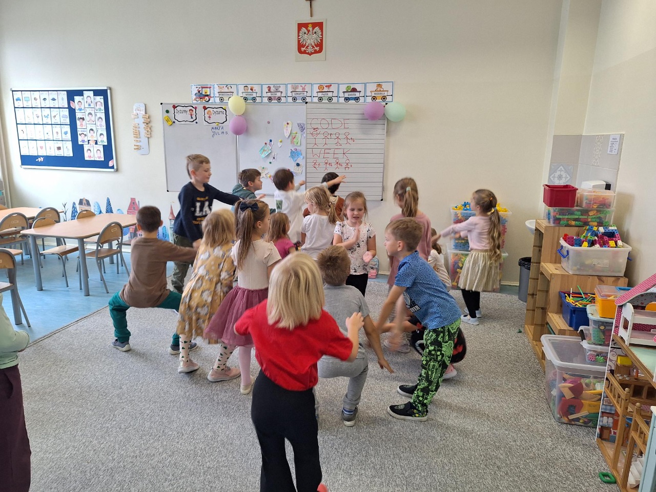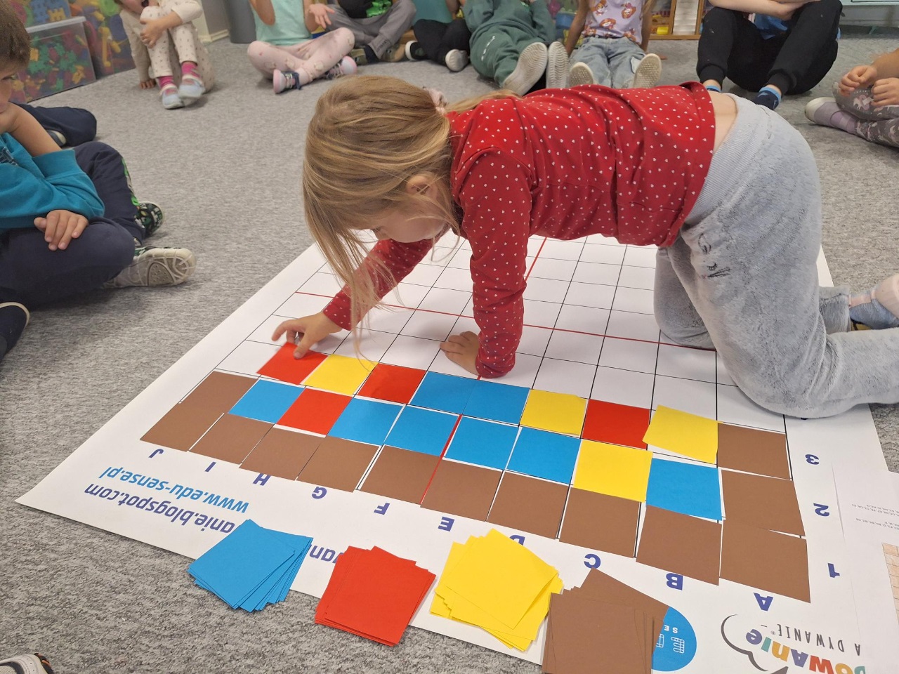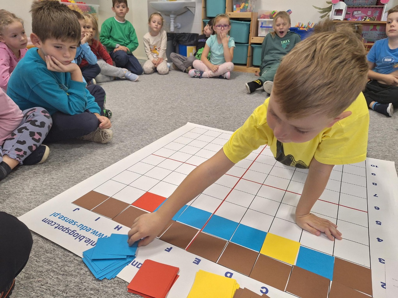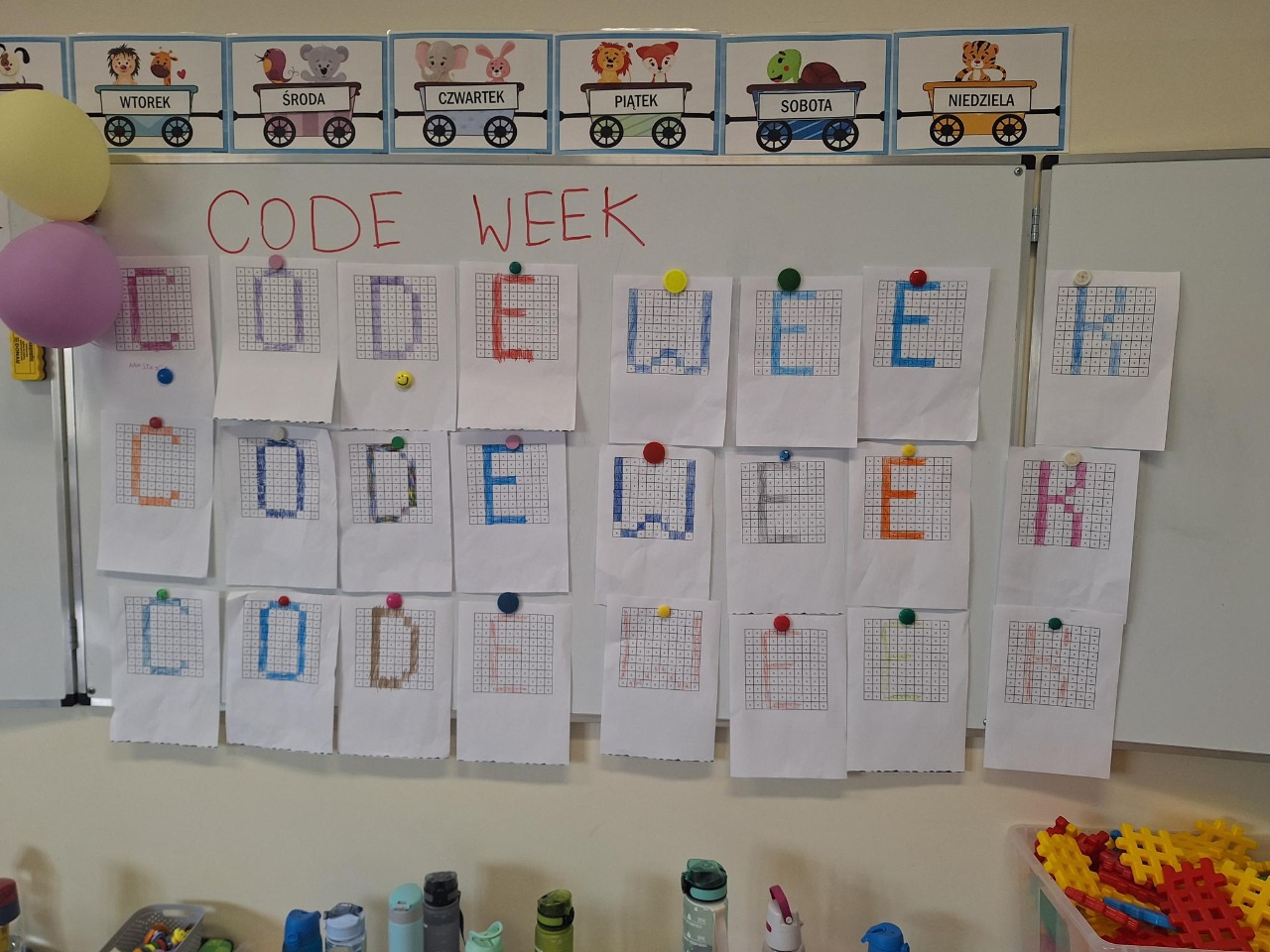 W październiku, przez dwa tygodnie dzieci z grupy 0b uczestniczyły w CodeWeek - Europejskim Święcie Kodowania. Zajęcia z kodowania polegają na nauce podstaw programowania i myślenia algorytmicznego w formie zabawy. Rozwija ono kreatywność, współpracę, logiczne myślenie i umiejętności rozwiązywania problemów, a także wyłapywanie błędów i ich poprawianie. Zerowkowicze min. układali dyktanda graficzne, puzzle tematyczne, programowali figury taneczne, kody strzałkowe i za pomocą robota geniBot oraz stworzyli własną grę planszową.