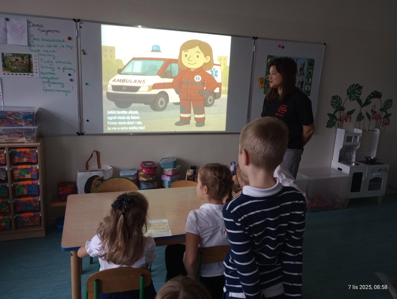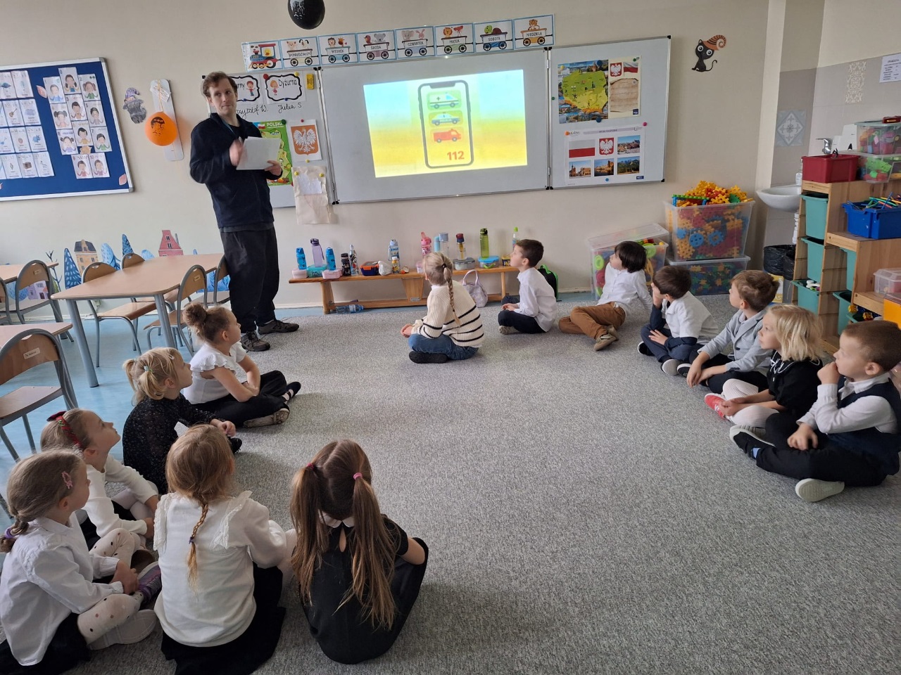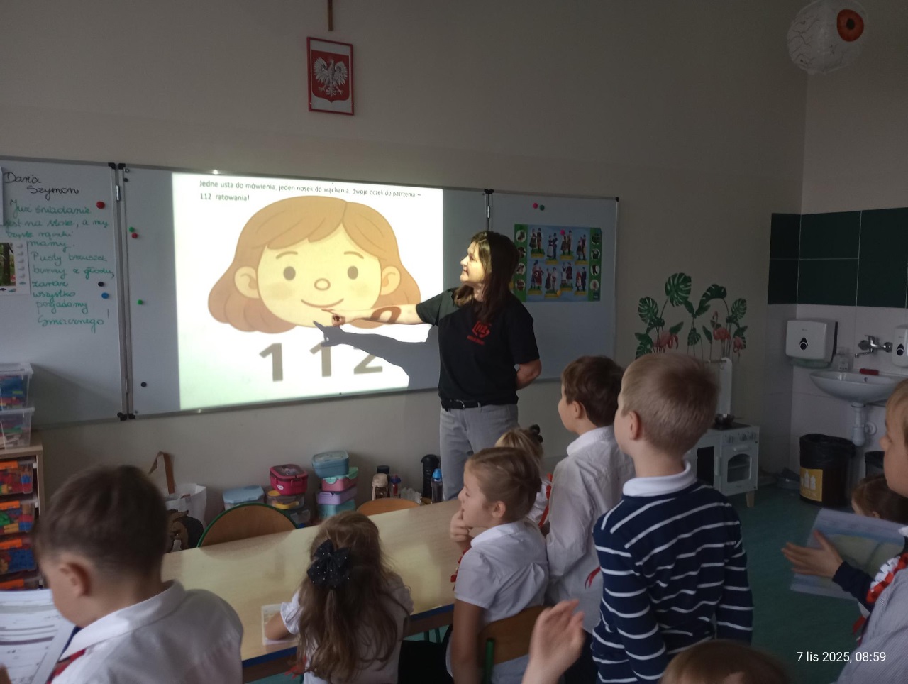 W piątek 7.11.2025 dzieci z grup zerowych miały okazję spotkać się z wyjątkowymi gośćmi – pracownikami Centrum Powiadamiania Ratunkowego (CPR). Podczas spotkania dowiedzieliśmy się, na czym polega praca operatorów numeru 112, jak wygląda przyjmowanie zgłoszeń i komu udzielana jest pomoc w sytuacjach zagrożenia. Goście w ciekawy sposób opowiedzieli o tym, w jakich sytuacjach należy dzwonić pod numer alarmowy oraz jakich informacji należy udzielić podczas rozmowy.
