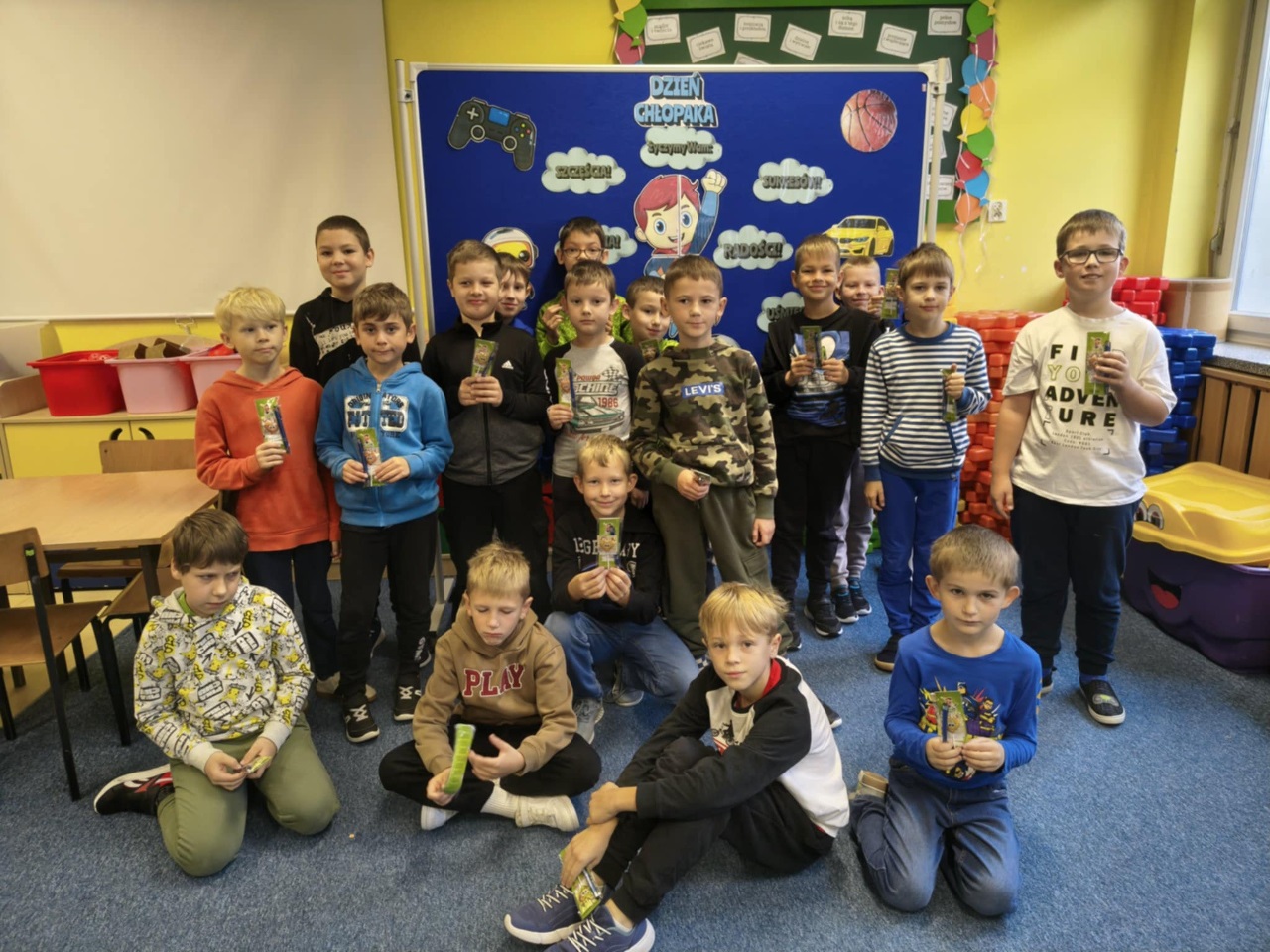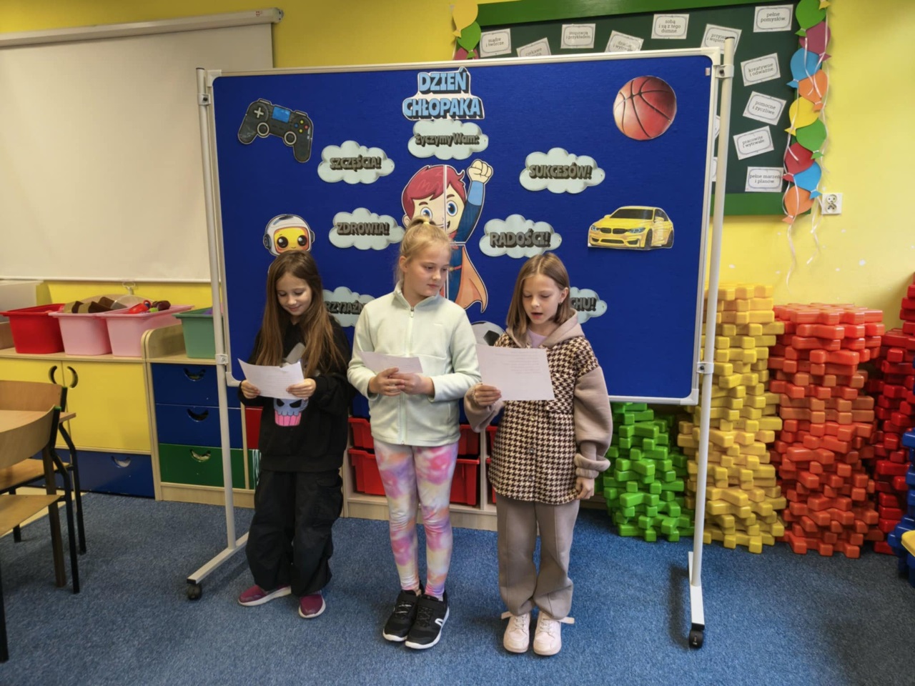 30 września w świetlicy klas trzecich zorganizowaliśmy obchody Dnia Chłopaka. Od samego rana panowała radosna atmosfera. Chłopcy z chęcią brali udział w przygotowanych specjalnie dla nich grach i zabawach. W czasie konkurencji sportowych mieli okazję wykazać się zręcznością i zwinnością. W quizie wiedzy z różnych dziedzin, m.in. geografii, historii i polityki, wykazali się imponującą pamięcią i ciekawością świata. Na zakończenie dziewczynki złożyły chłopcom serdeczne życzenia i wręczyły drobne upominki.