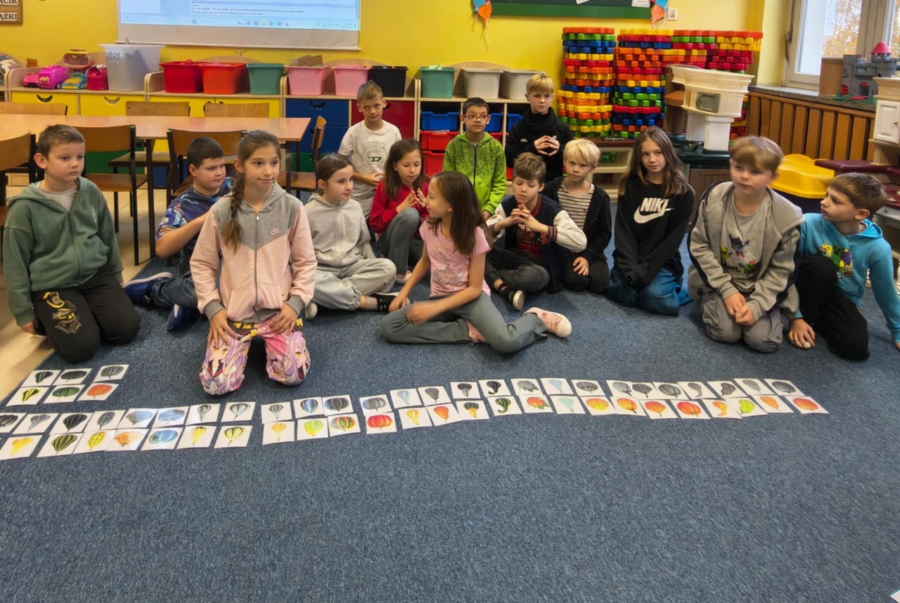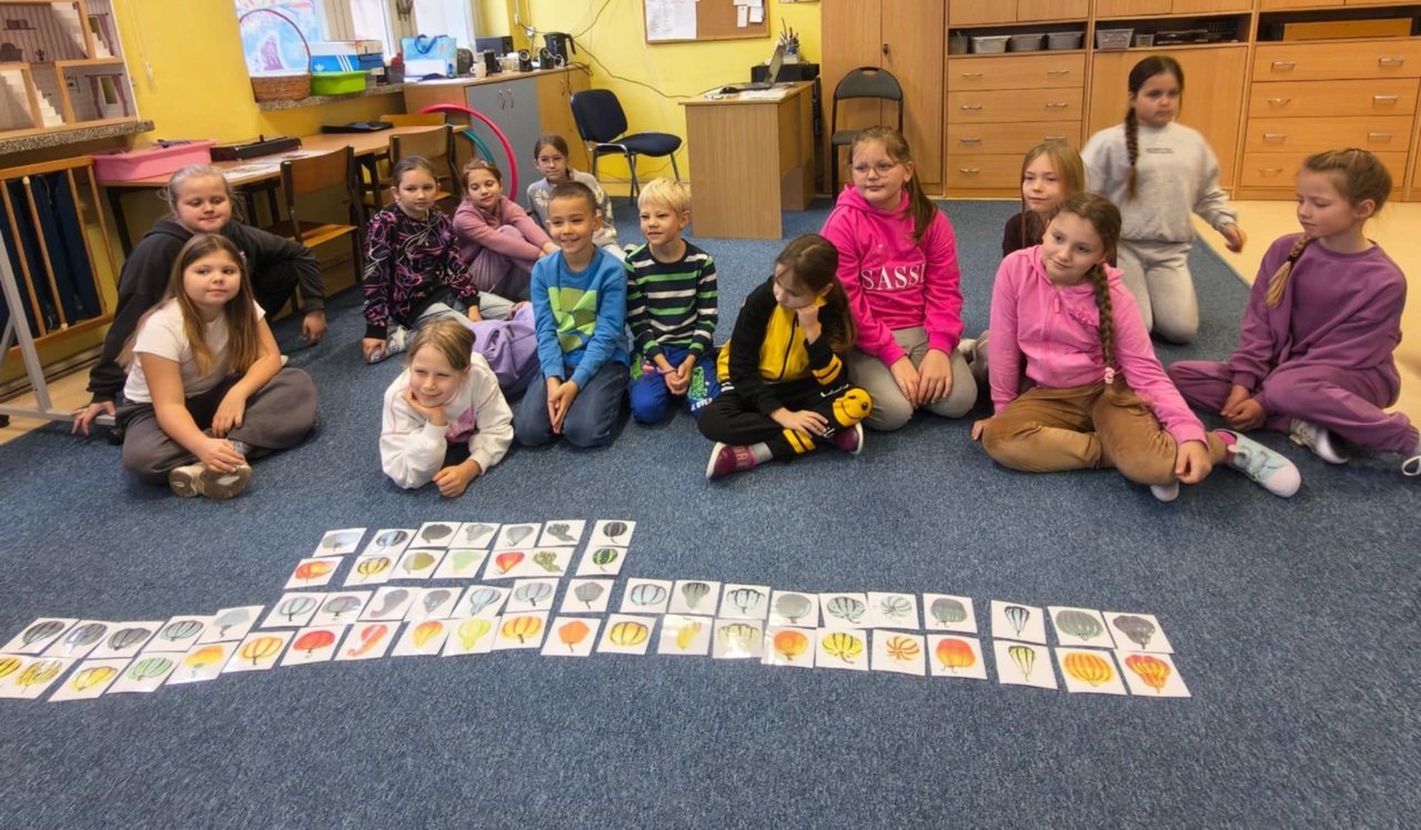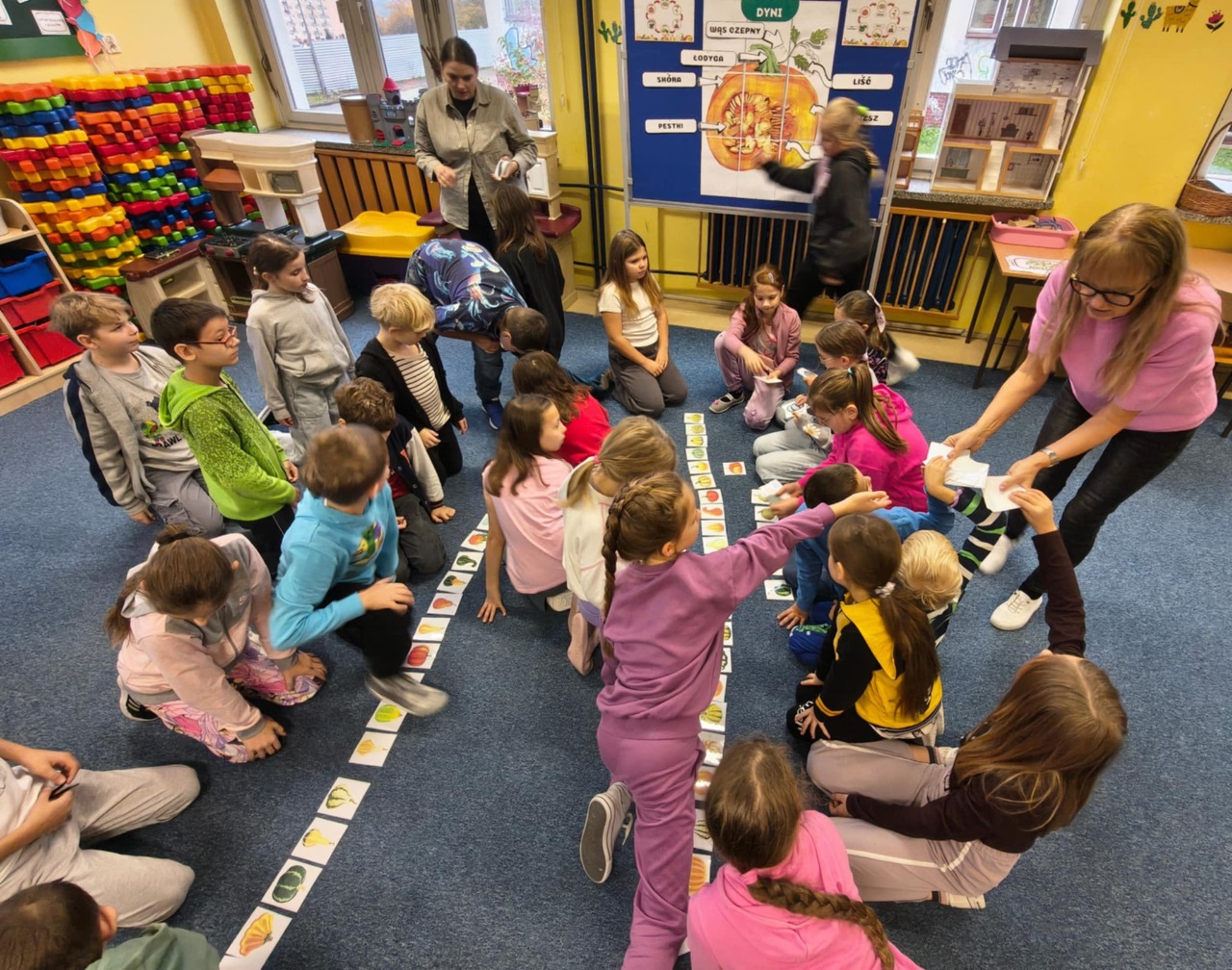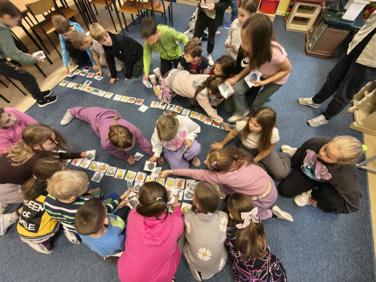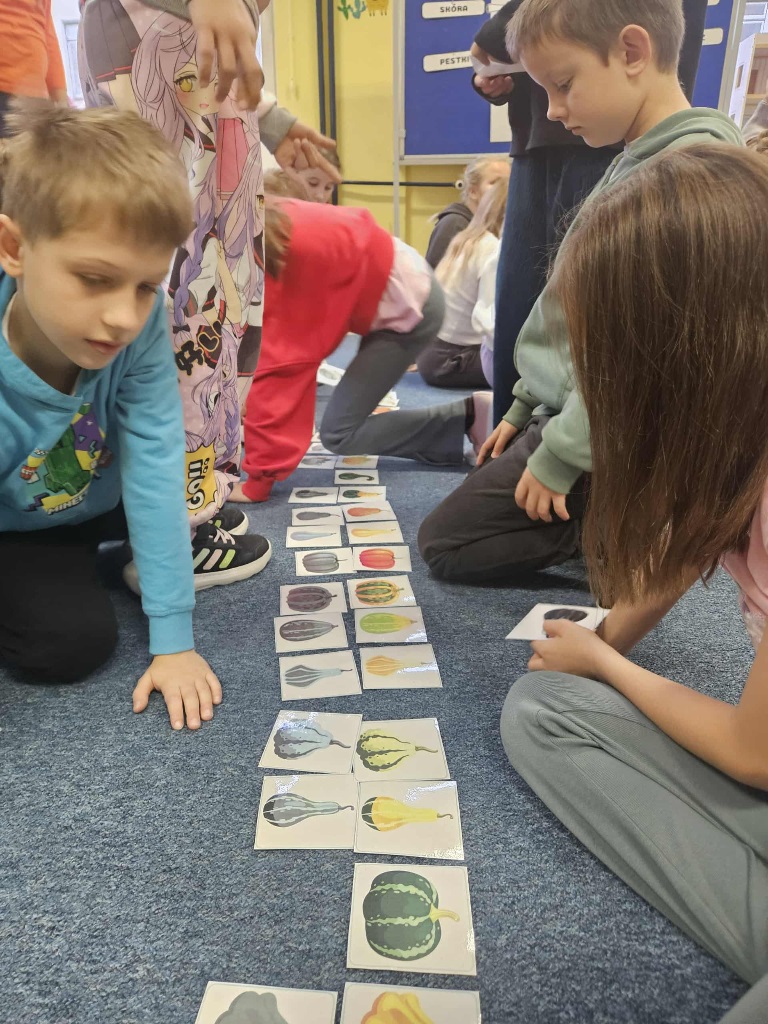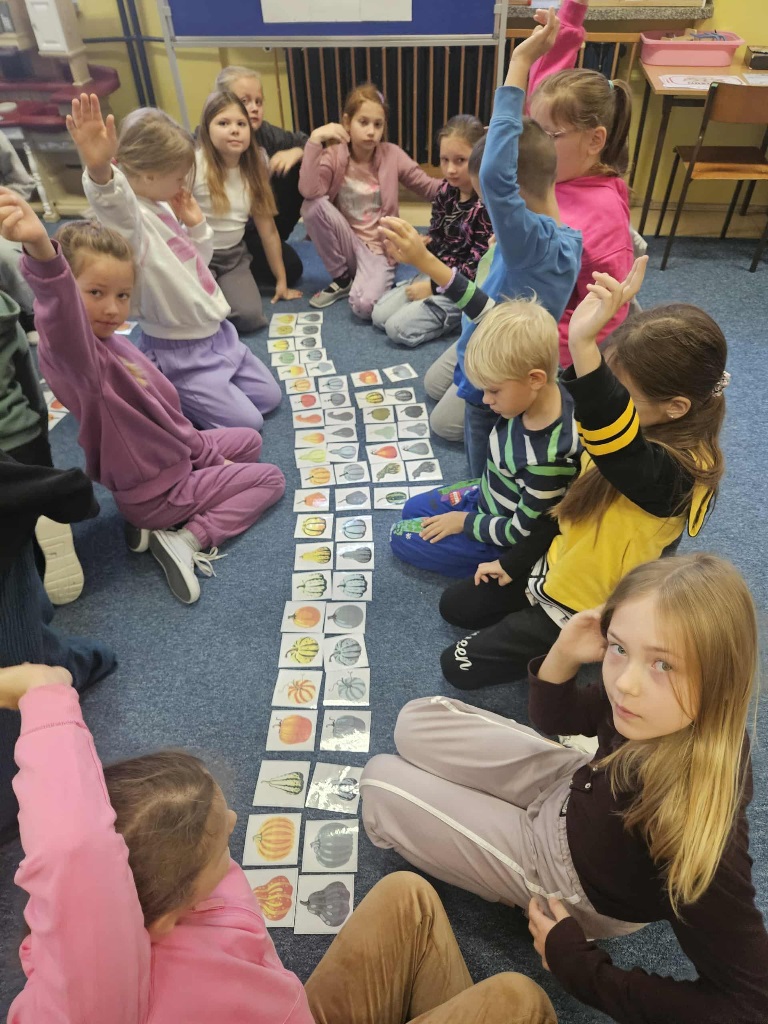 Na koniec wzięliśmy udział w zabawie, którą szczególnie lubią nasze świetliki – dzieląc się na dwie drużyny, dopasowywaliśmy różne rodzaje dyń do ich cieni. Ta zabawa sprawiła dzieciom wiele radości i uśmiechu!