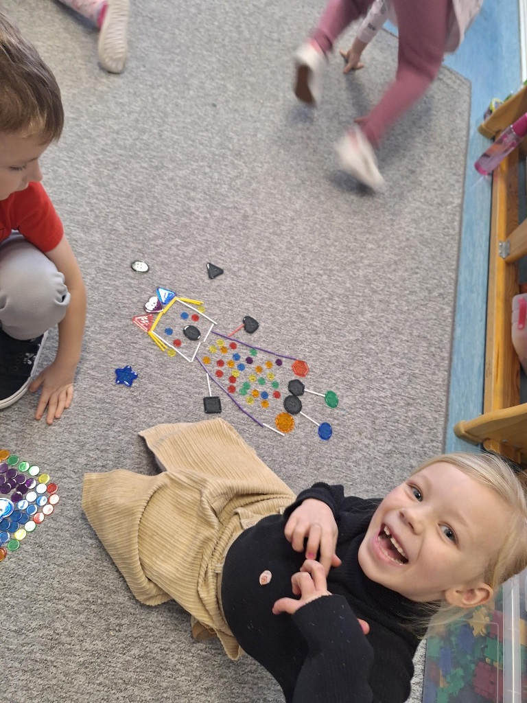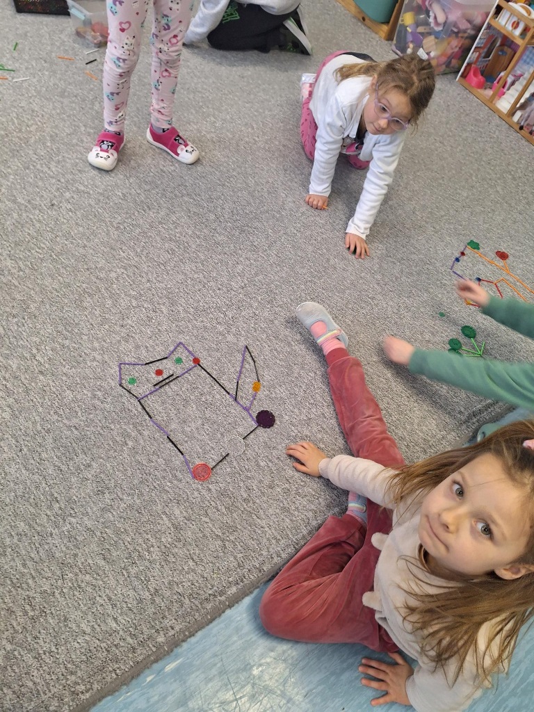 Zerówkowicze wrócili po feriach pełni wspomnień, ale i marzeń na przyszłość. Punktem wyjścia do zajęć była lektura "Humory Hipolita Kabla - Dzień jak marzenie". Tekst stał się kluczem do świata dziecięcych fantazji. We wspólnym kręgu każde dziecko miało przestrzeń na sformułowanie i wypowiedzenie swoich marzeń i pragnień. Zwieńczeniem zajęć była praca konstrukcyjna z wykorzystaniem patyczków, guzików czy kolorowych żetonów.