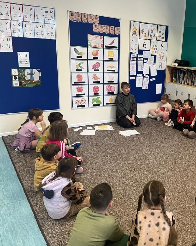 W sali dzieci wykonały zadania tematyczne, utrwalając zdobytą wiedzę w formie zabaw i aktywności dostosowanych do ich wieku.
