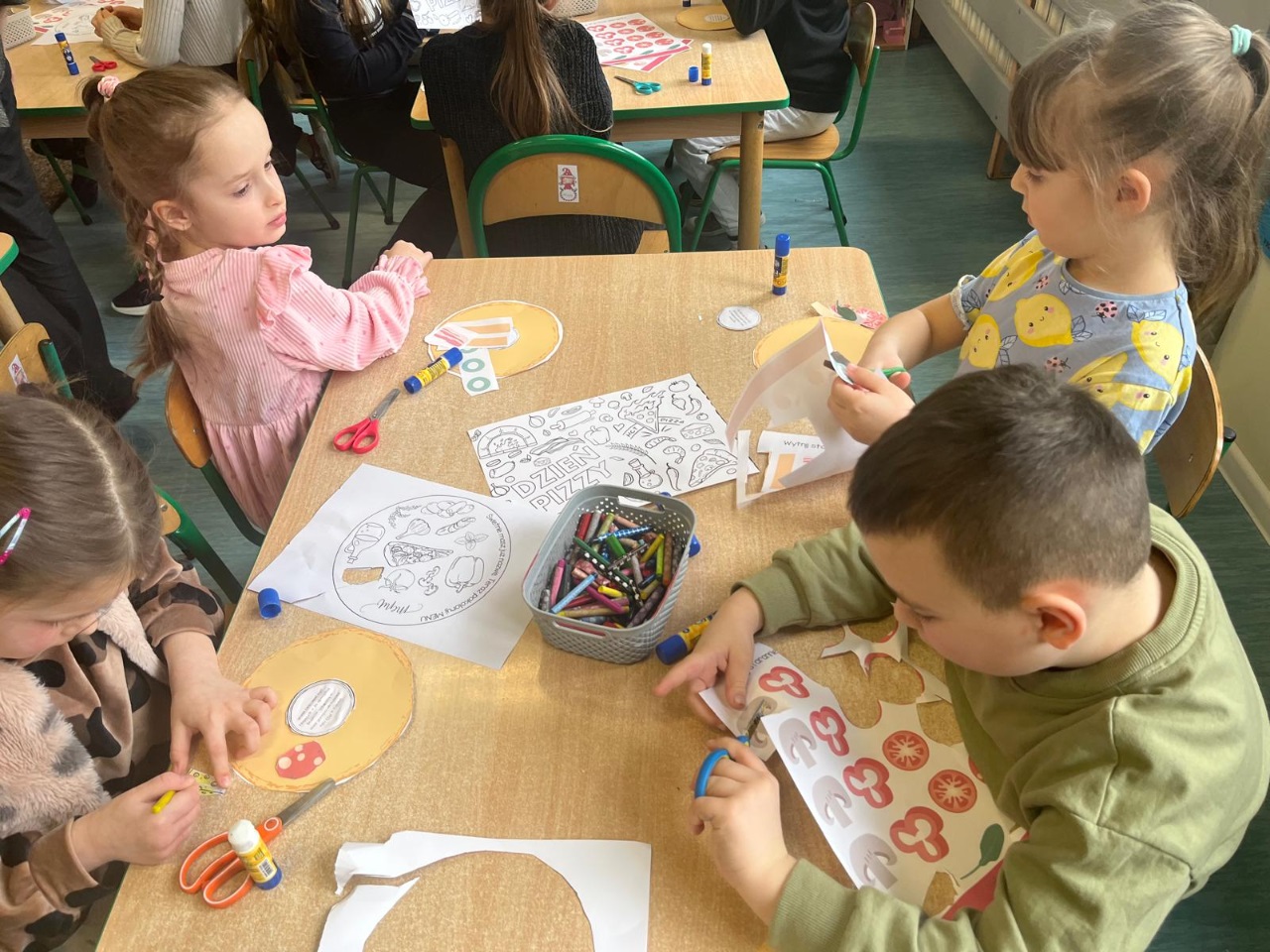 Podczas wizyty dzieci miały okazję zobaczyć, jak powstaje pizza, poznać etapy jej przygotowania oraz dowiedzieć się, na czym polega praca w pizzerii. Wyjście było także okazją do rozwijania umiejętności społecznych i kulturalnego zachowania w miejscu publicznym.