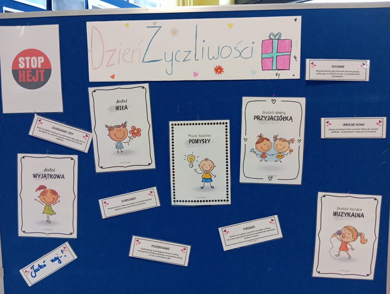 21 listopada obchodziliśmy Światowy Dzień Życzliwości. Była to świetna okazja, aby przypomnieć sobie, jak ważne są dobre słowa, uśmiech i wzajemna pomoc. Tego dnia uczniowie i nauczyciele aktywnie okazywali sobie życzliwość – wymieniali miłe gesty, pozdrowienia, wspierali się w codziennych zadaniach i starali się tworzyć wokół siebie przyjazną atmosferę.
