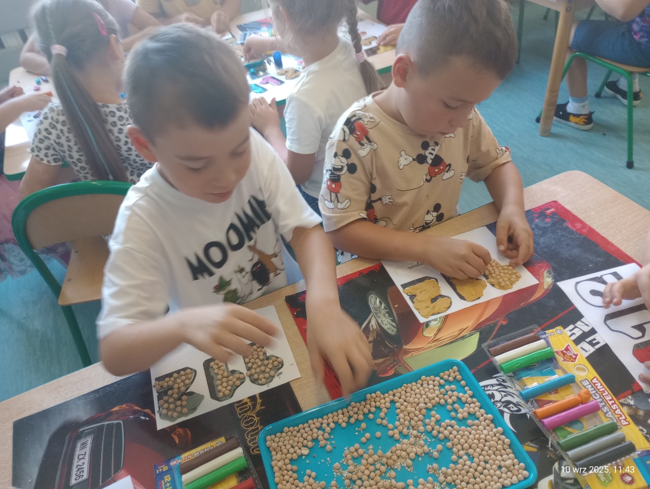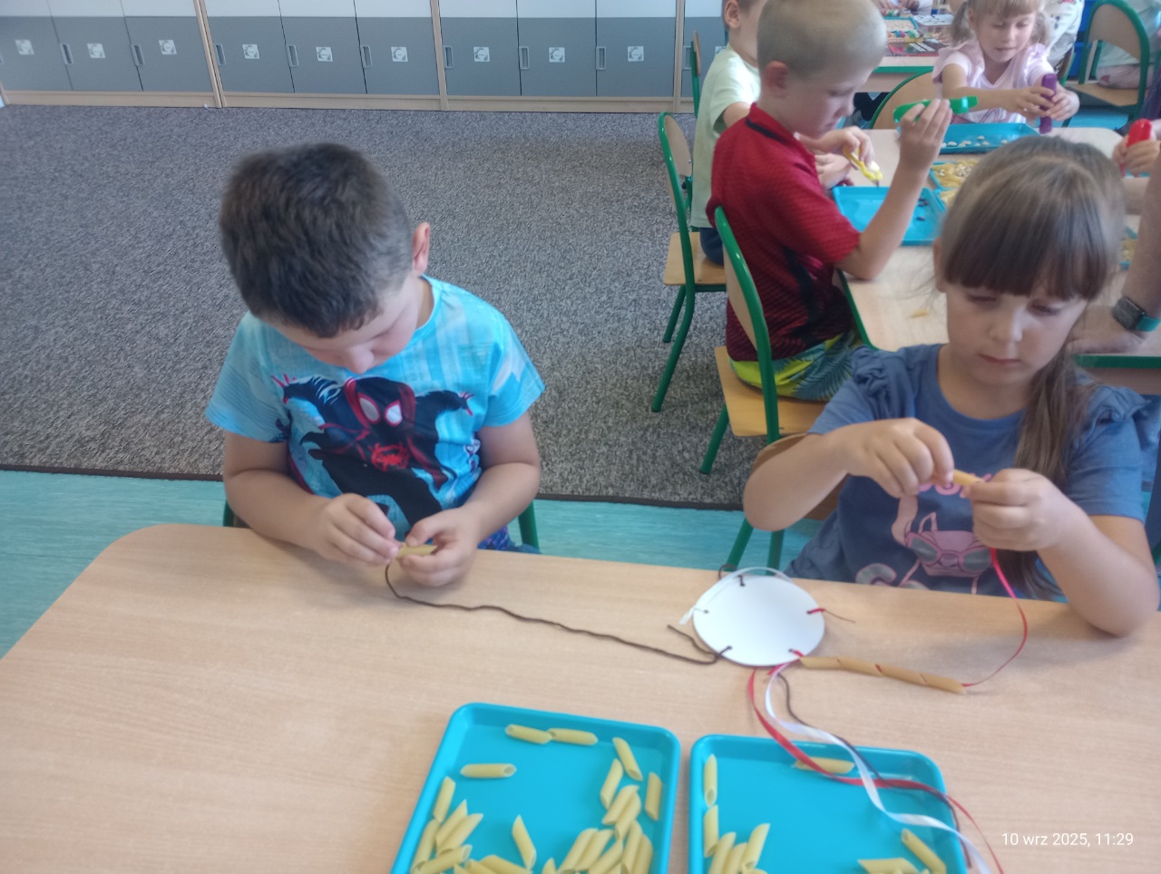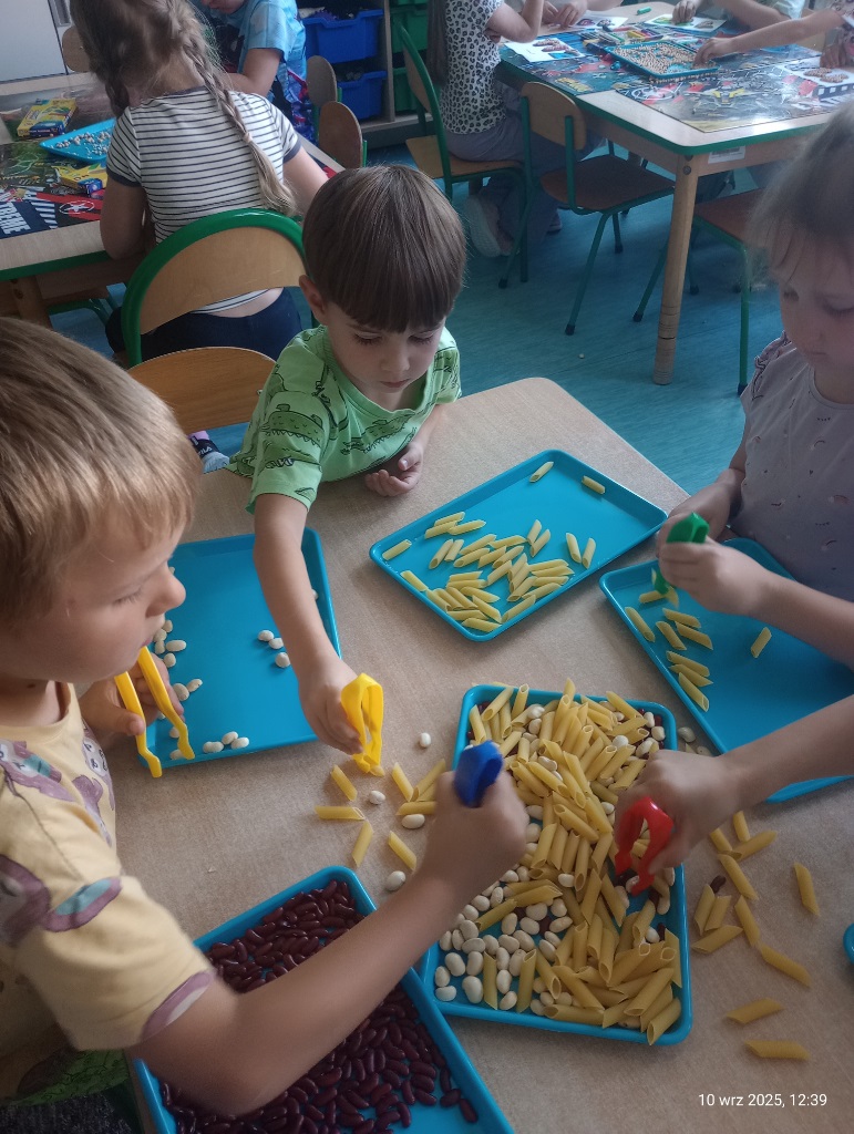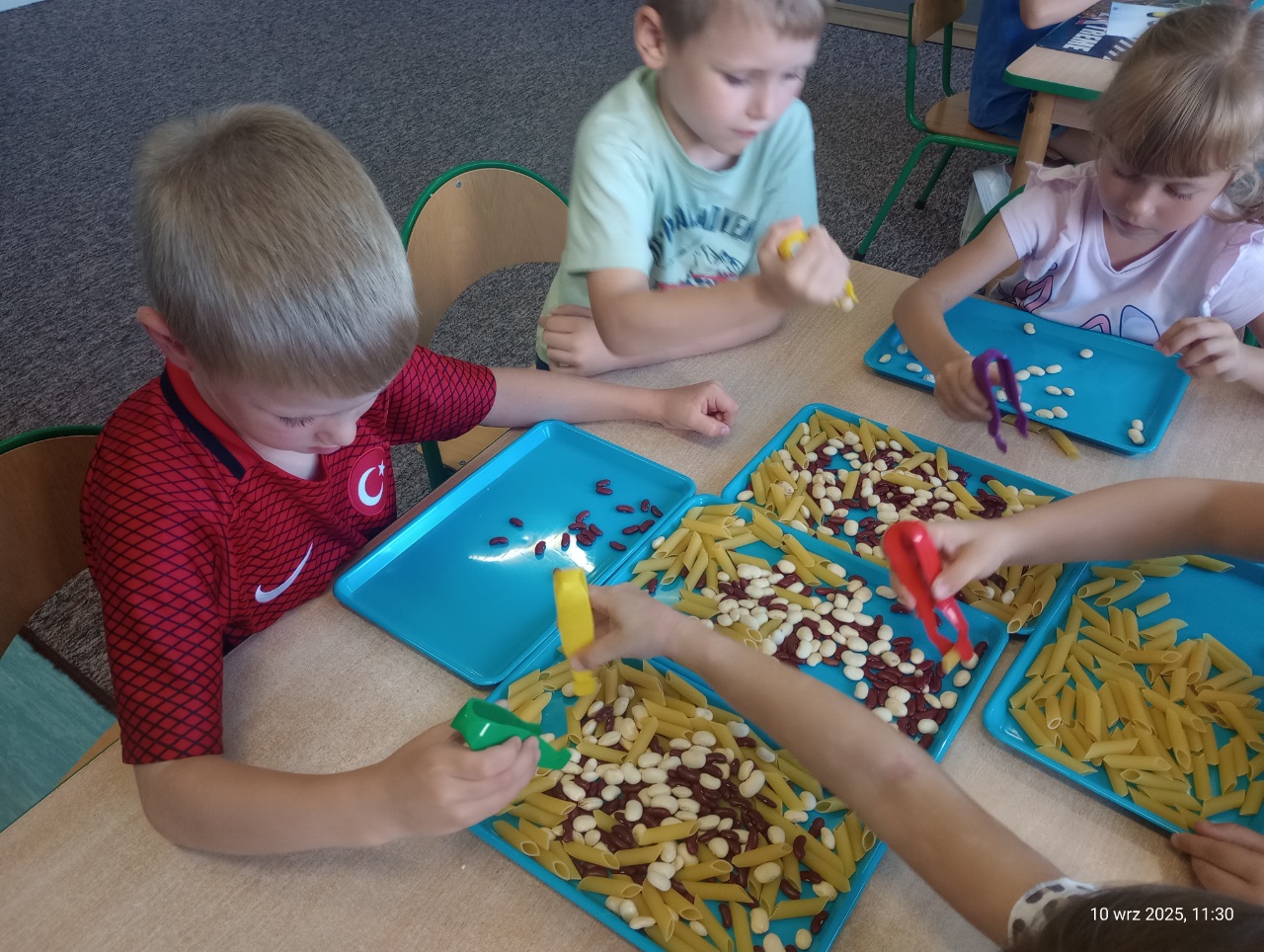 Grupa 0A od pierwszych dni w szkole przygotowuje swoje rączki do klasy pierwszej - nawlekanie, zabawy szczypcami i plasteliną, to coś, co małe rączki lubią i potrzebują najbardziej 😊.