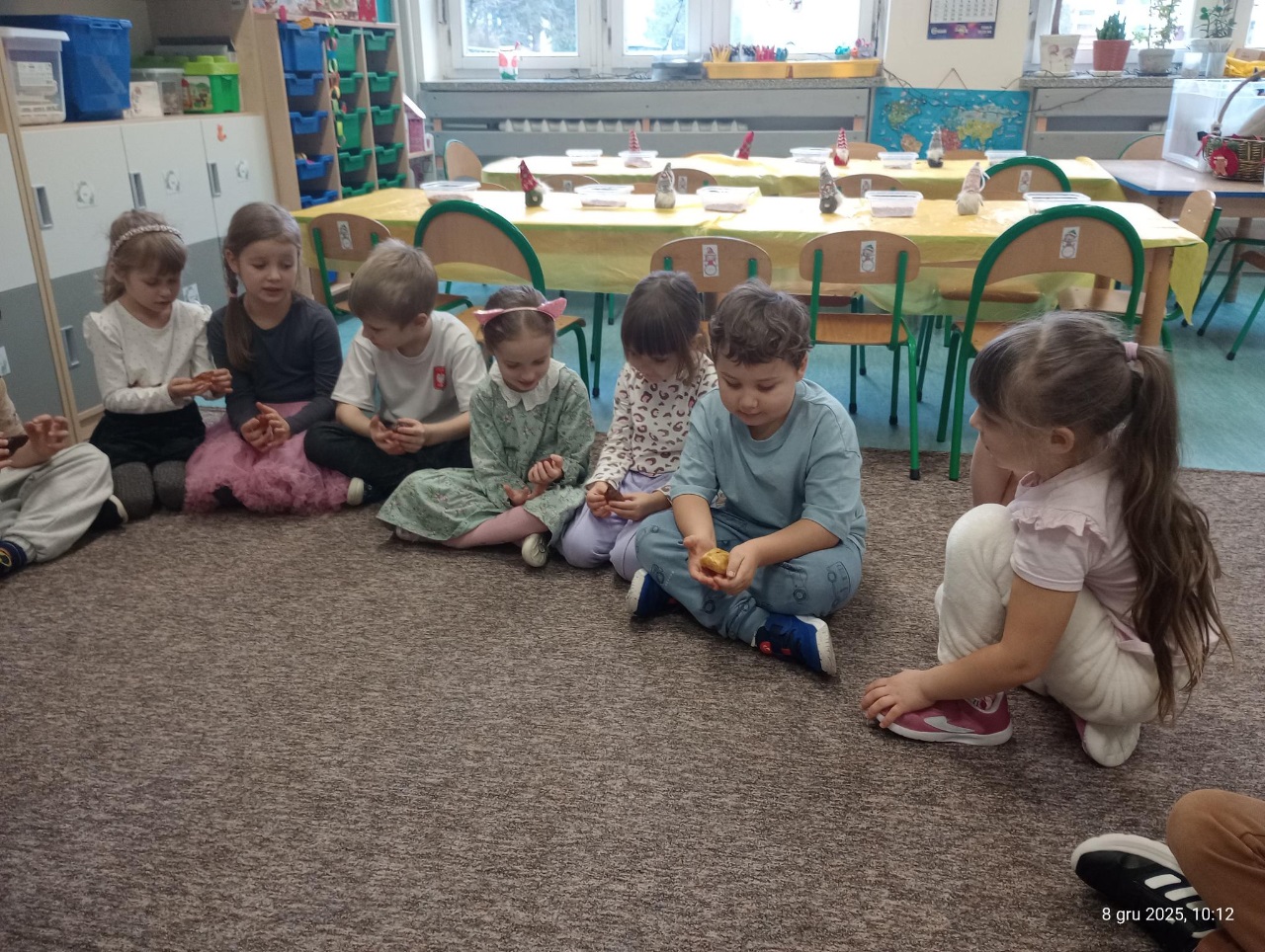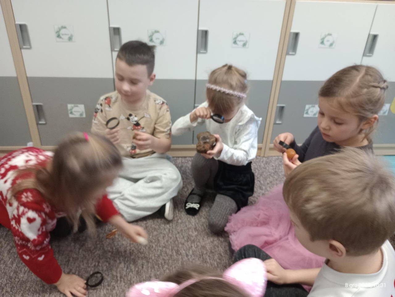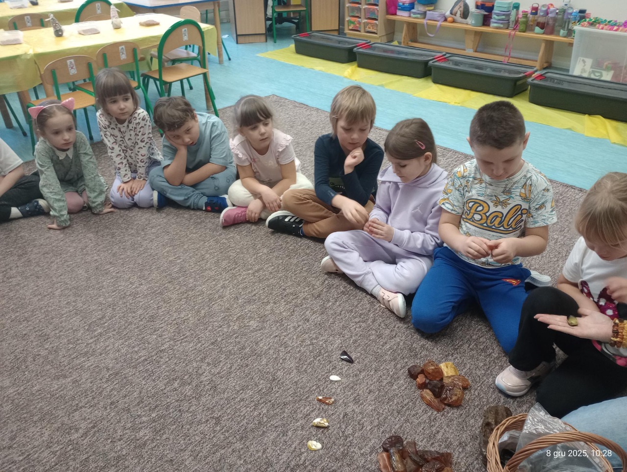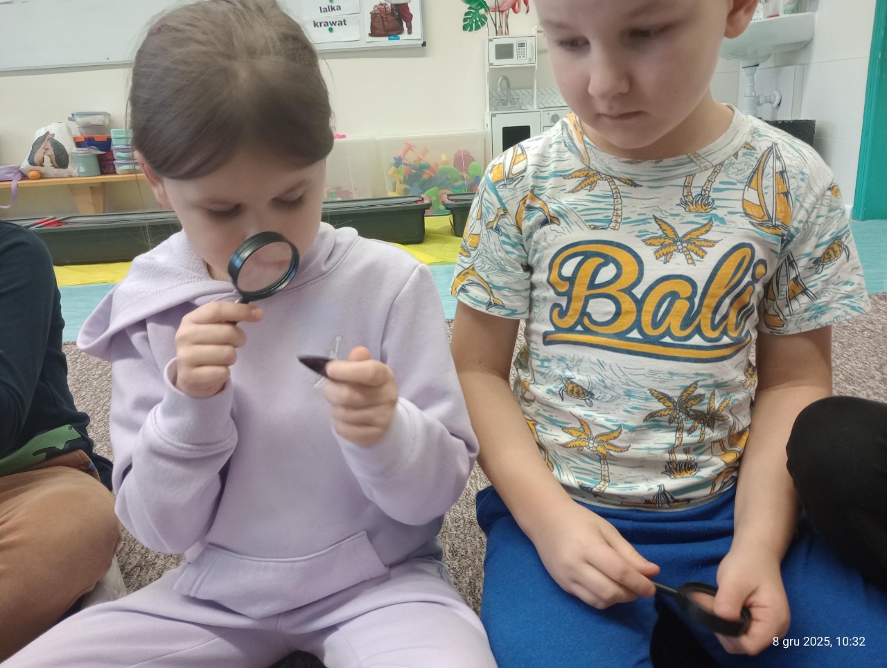 Warsztaty prowadzone przez Jantarkowo to ogromna dawka wiedzy, sensoryki i zabawy. Podczas warsztatów bursztynniczych Dzieci z grupy 0A wysłuchały opowieści, jak powstaje bursztyn, obejrzały inkluzje z owadami sprzed 40 mln lat. Grupa miała również okazję do samodzielnego poszukiwania bursztynu na zaimprowizowanej plaży z muszelkami, patykami i oczywiście bursztynami zakopanymi do odszukania.