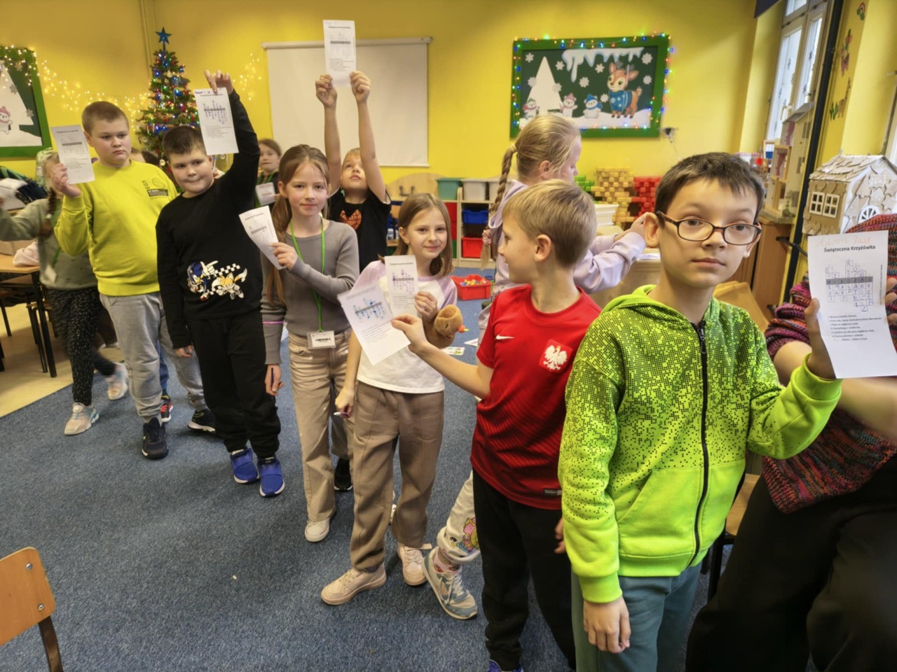 Wśród zadań znalazły się m.in. nauka zwrotu Wesołych Świat w różnych językach świata, rozwiązywanie świątecznych rebusów i krzyżówek, układanie świątecznych obrazków z przygotowanych puzzli, własnoręczne przygotowanie zawieszki na choinkę, układanie świątecznych zdań z rozsypanki wyrazowej i wiele, wiele innych. Każde z tych działań dostarczało dzieciom wielu emocji i okazji do wspólnej zabawy.