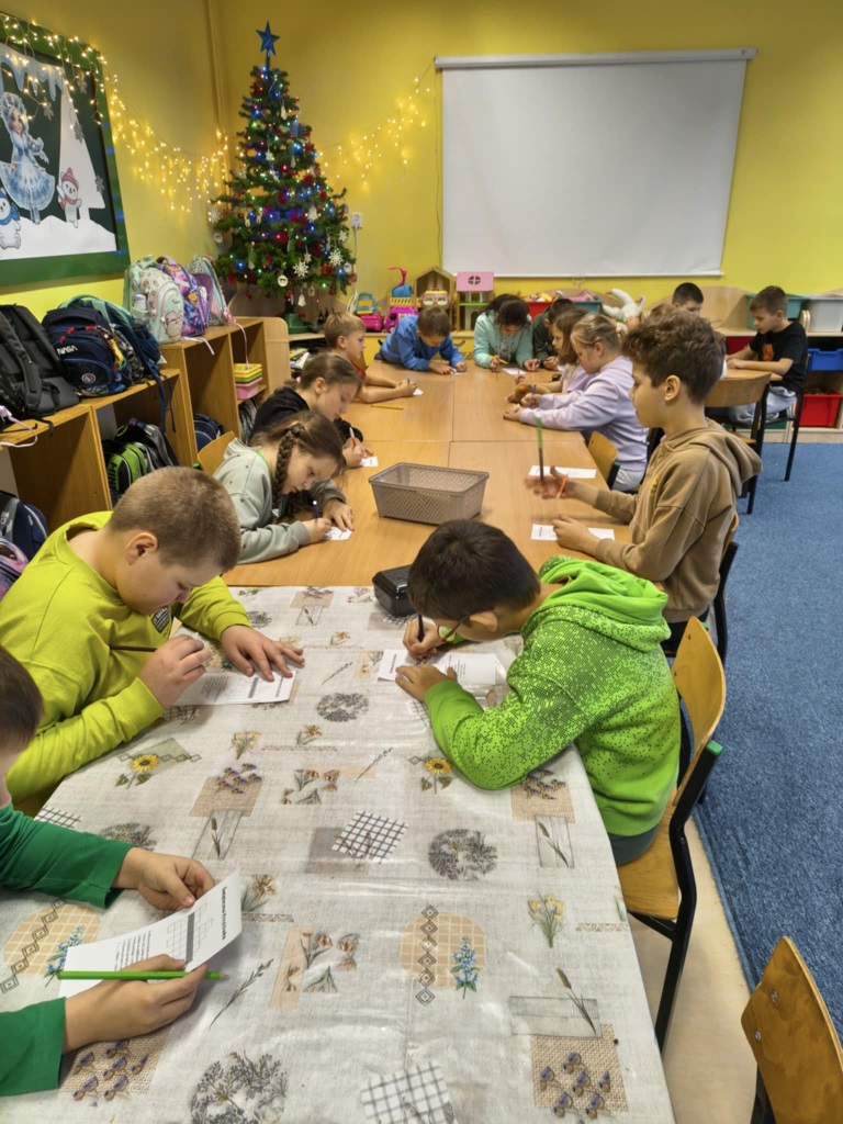 W naszej świetlicy każdego dnia uczniowie z niecierpliwością odkrywali karty z zadaniami przygotowanymi na dany dzień. Kalendarz adwentowy stał się doskonałym połączeniem zabawy i nauki. Dzięki różnorodnym aktywnościom dzieci mogły codziennie rozwijać swoje umiejętności, pobudzać kreatywność oraz zdobywać nową wiedzę w przyjaznej, świątecznej atmosferze.