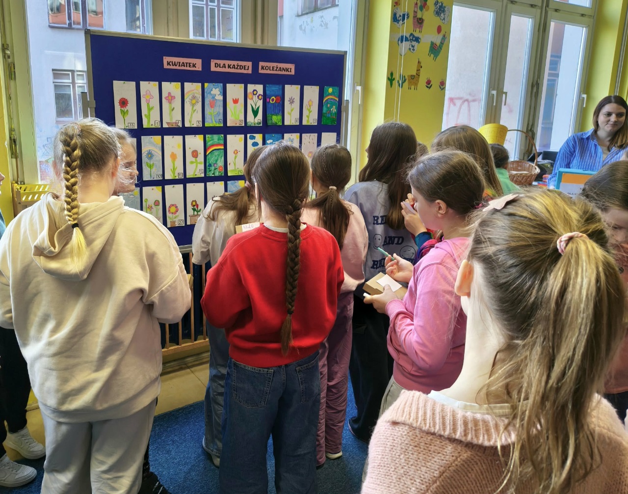 W świetlicy dla klas trzecich odbył się wyjątkowy konkurs z okazji Dnia Kobiet, skierowany do wszystkich chłopców pt. „Kwiatek dla każdej koleżanki”.
