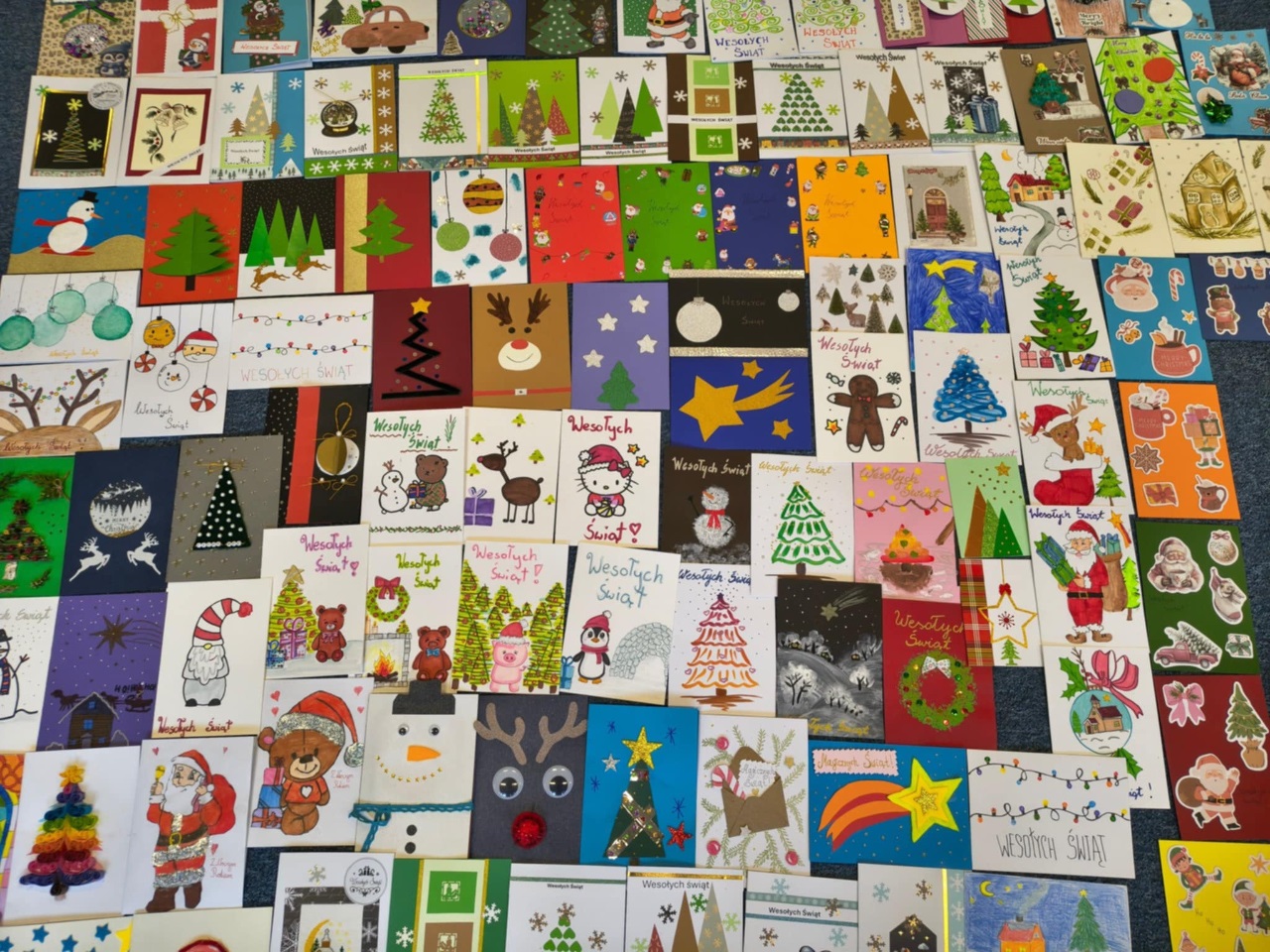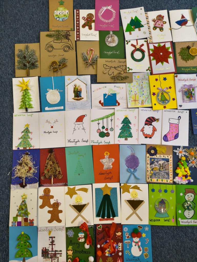 Przed nami kolejne święta Bożego Narodzenia. Zgodnie z coroczną tradycją wychowawcy świetlicy klas trzecich już po raz kolejny ogłosili rodzinny konkurs na wykonanie kartek bożonarodzeniowych. Zadaniem uczestników było wykonać dowolną ilość kartek świątecznych wspólnie z najbliższymi. Miał być to czas spędzony razem, przepełniony rozmową, radością i wspólną kreatywną pracą😊. Dzięki temu dzieci z klas 1-3 wraz ze swoimi najbliższymi stworzyły i dostarczyły do naszej świetlicy 289 sztuk przepięknych prac😊.