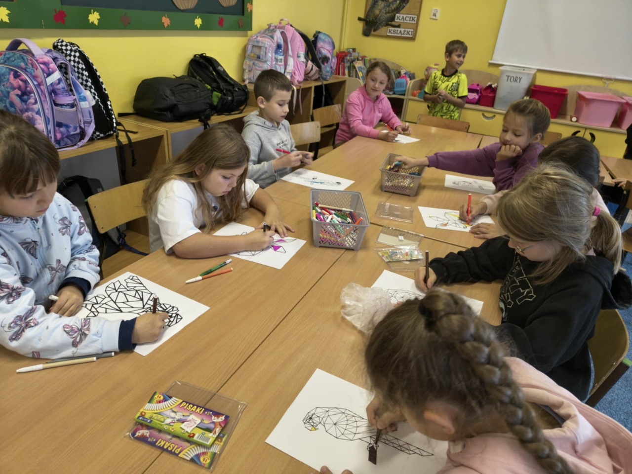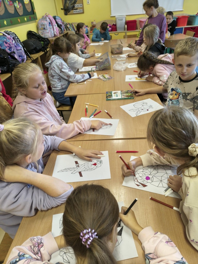 W świetlicy dla klas trzecich rozmawialiśmy o ważnej roli zwierząt w naszym życiu. Opowiadaliśmy o naszych milusińskich, którzy stali się częścią naszych rodzin. Zorganizowaliśmy również konkurs pt. “Zwierzęta w geometrii”, który polegał na precyzyjnym pokolorowaniu postaci wybranego zwierzęcia. Zainteresowanie konkursem było bardzo duże. Świetliki z niezwykłą starannością wykonywały swoje prace, dlatego jury postanowiło nagrodzić wszystkich uczestników - ponad 60 osób. Bardzo dziękujemy za Wasze zaangażowanie:)
