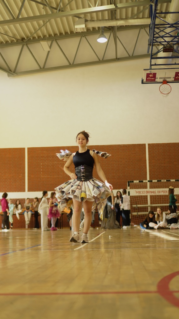 Prawdziwym hitem wydarzenia okazał się finałowy pokaz mody ekologicznej dla uczniów klas 4–8. Kreatywne stroje, wykonane z materiałów z recyklingu, wzbudziły podziw i wywołały gromkie brawa.
