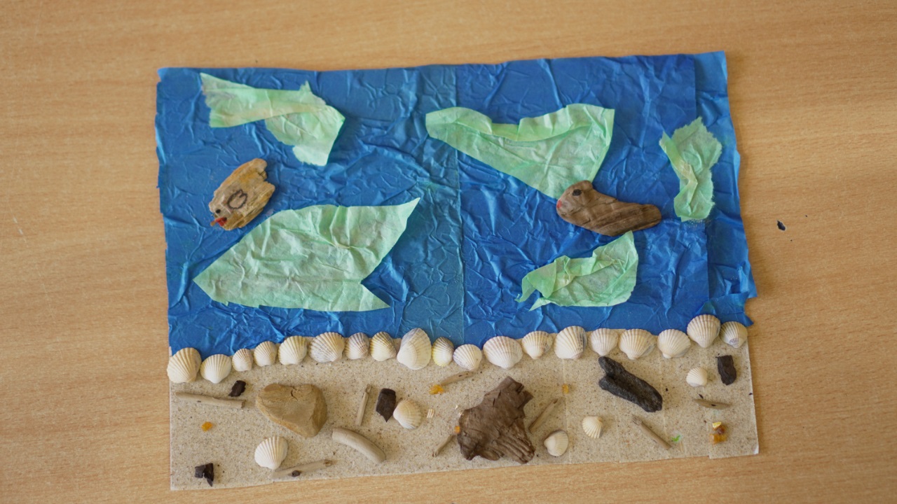Na uczestników czekało wiele różnorodnych konkurencji. Powstawały niezwykłe obrazy z muszelek, piasku i bursztynu, które zachwycały pomysłowością i precyzją. W części wiedzowej uczniowie zmierzyli się z testem ekologicznym i krzyżówkami, pokazując, jak wiele wiedzą o ochronie środowiska. Nie zabrakło także artystycznych wyzwań – podczas tworzenia plakatów inspirowanych hasłem „Zainwestuj w naszą planetę” powstały prace pełne kolorów i ważnych przesłań. Dużo radości przyniosło również układanie rymowanek, w których uczniowie w zabawny sposób przekazywali ekologiczne treści, oraz składanie puzzli, które wymagało współpracy i spostrzegawczości.