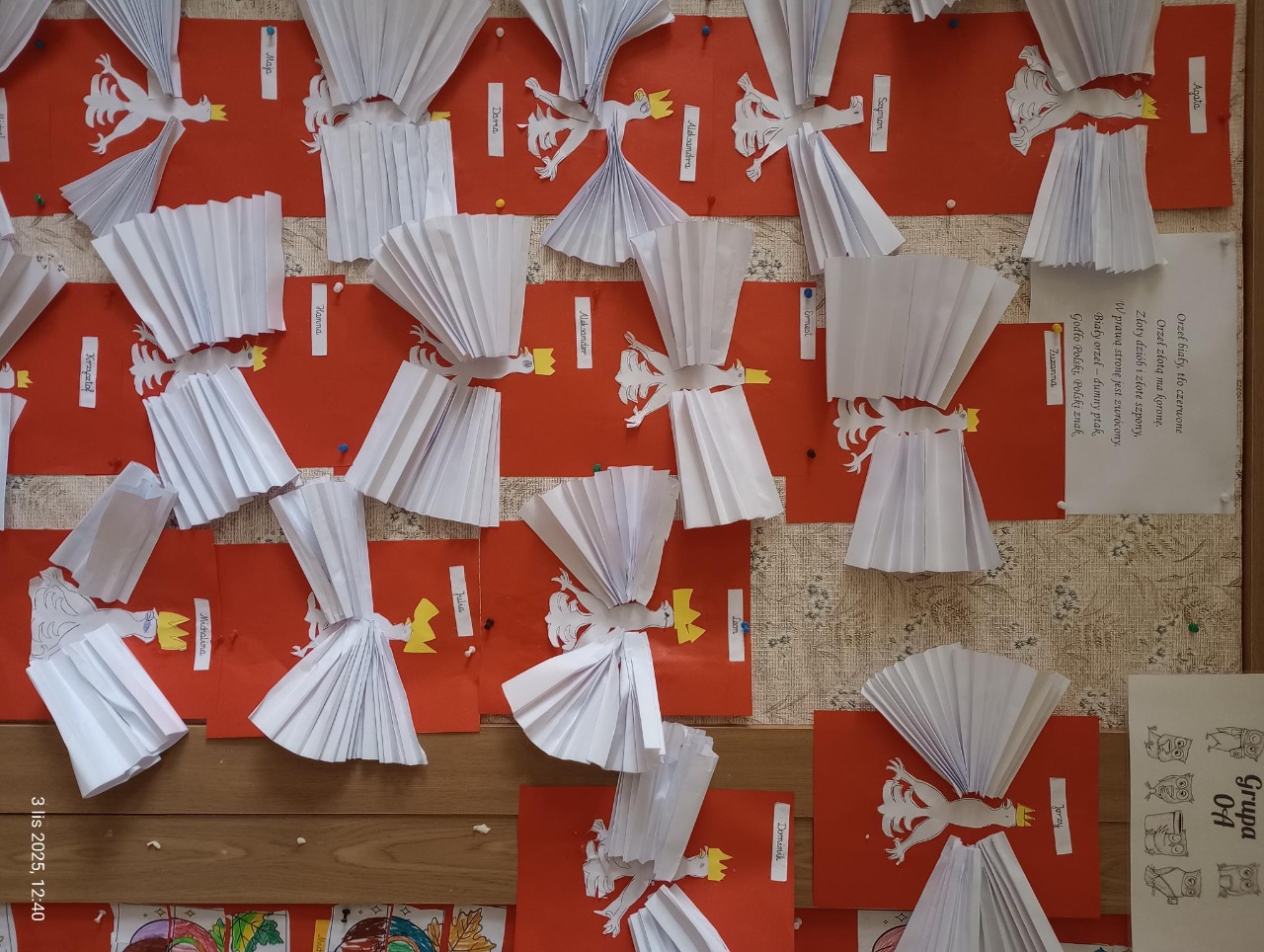 Grupa wzięła również udział w apelu przygotowanym przez uczniów z klas 1-3 oraz wykonała godło Polski.