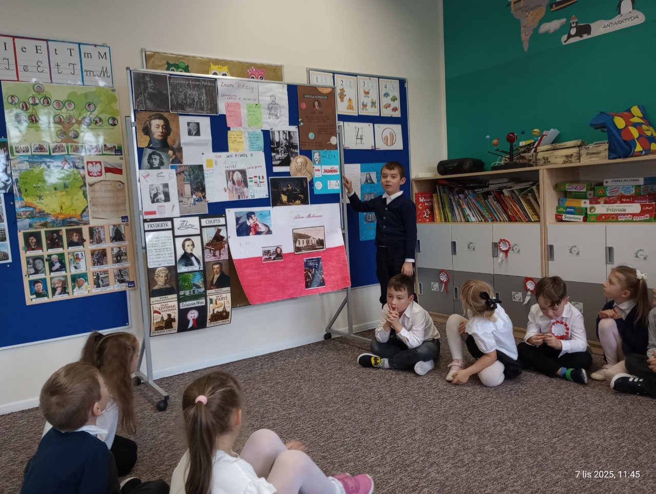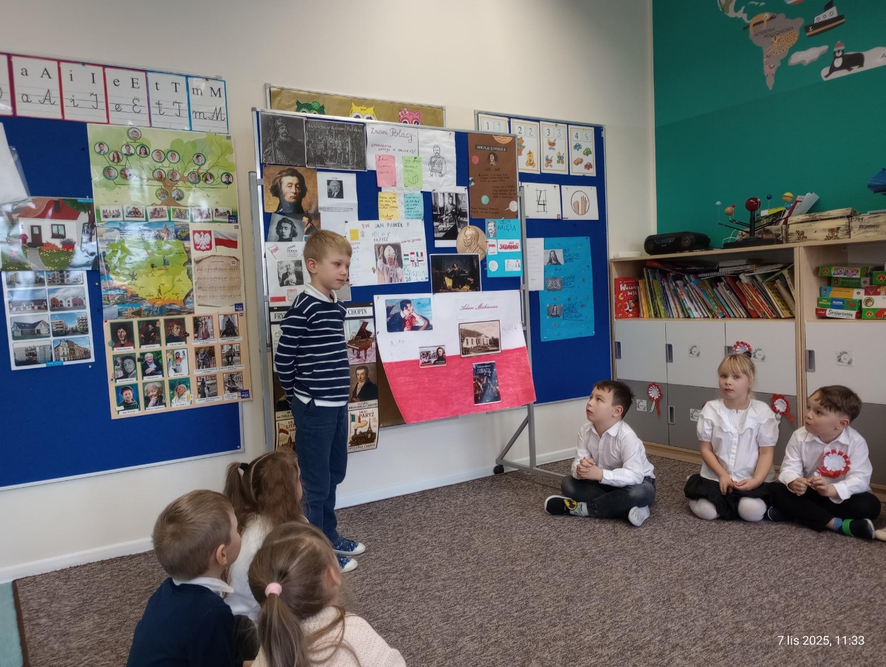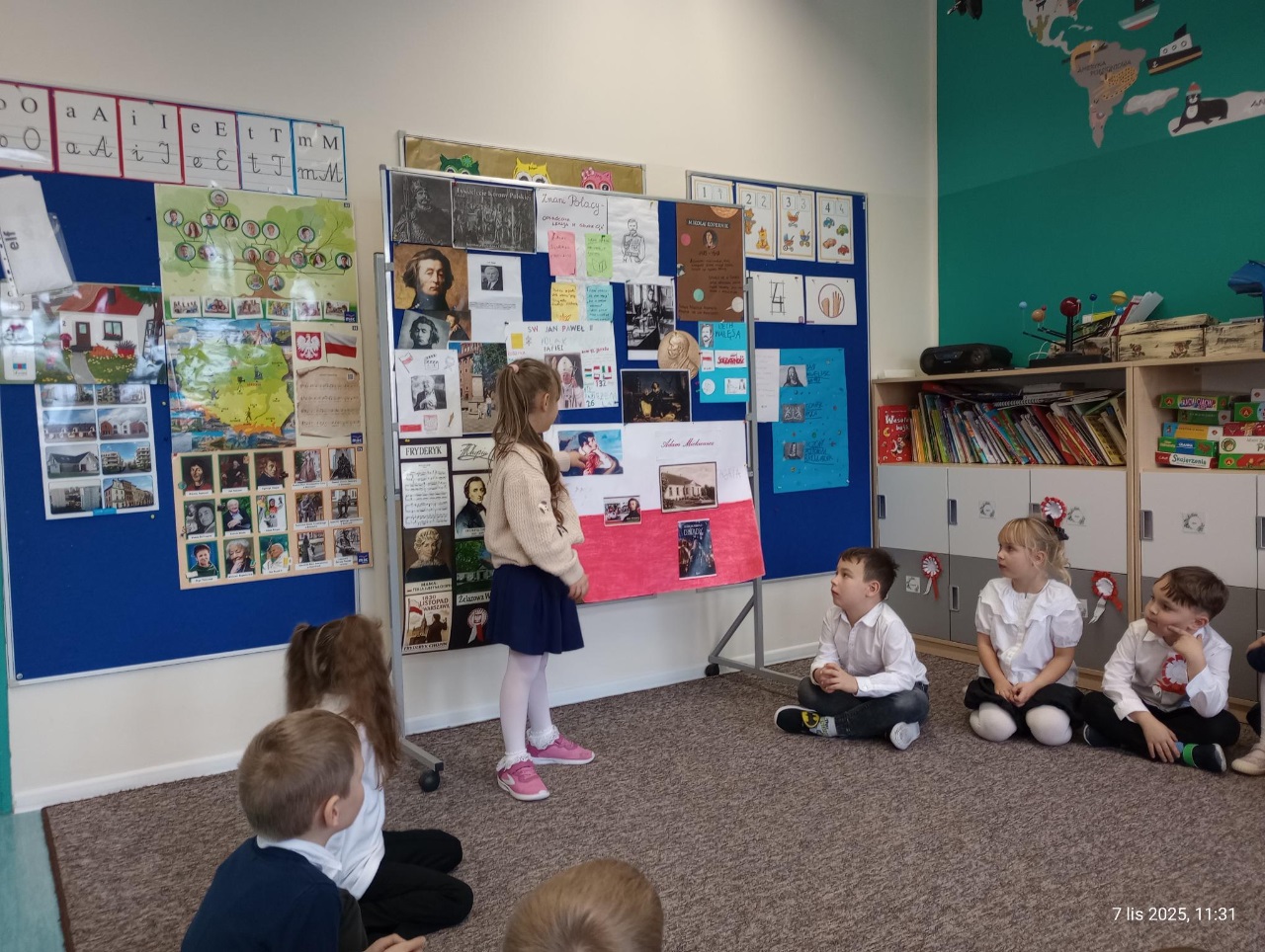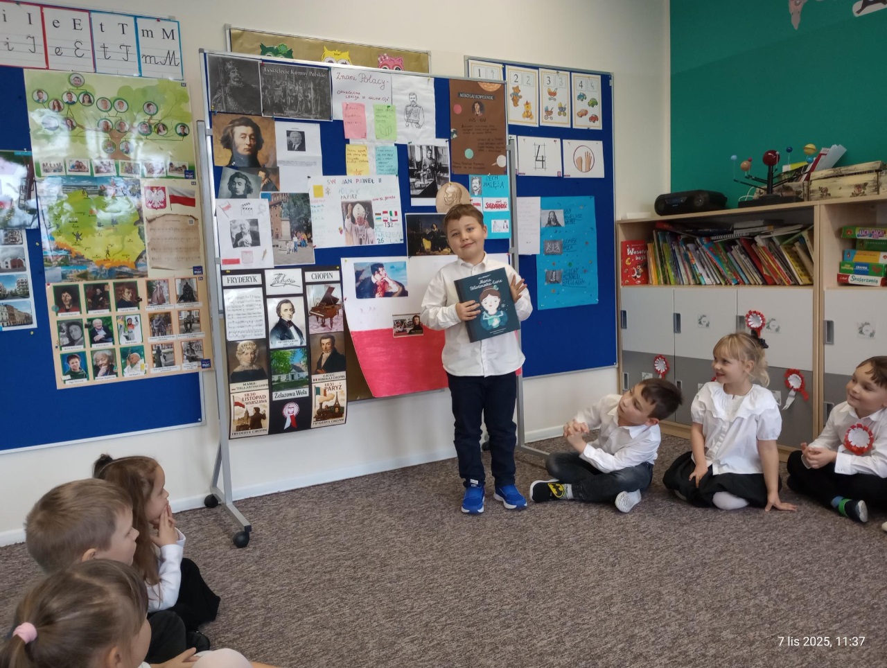 Odwrócona lekcja w grupie 0A - dzieci przedstawiają znanych Polaków