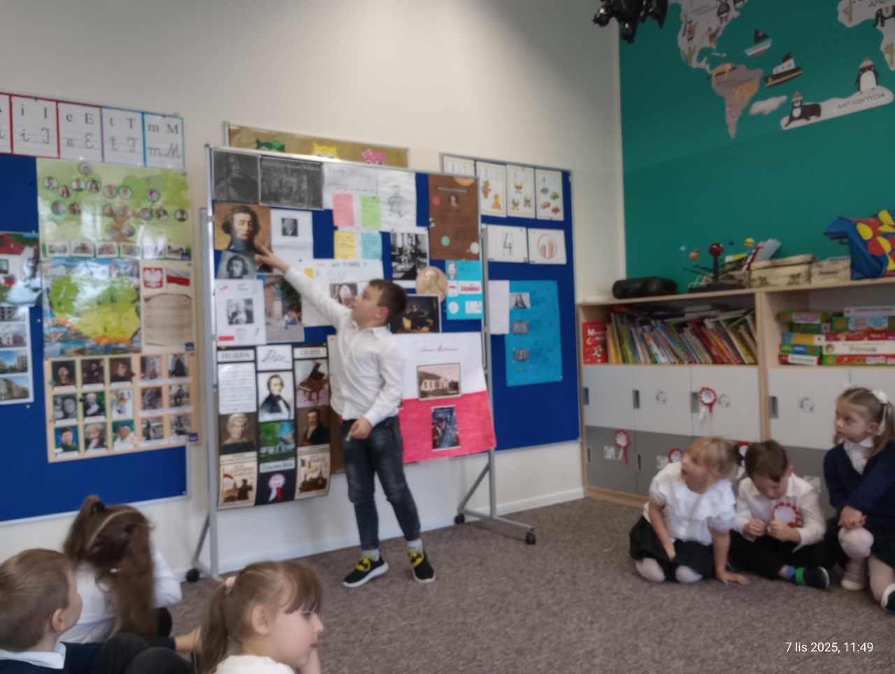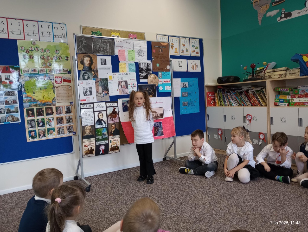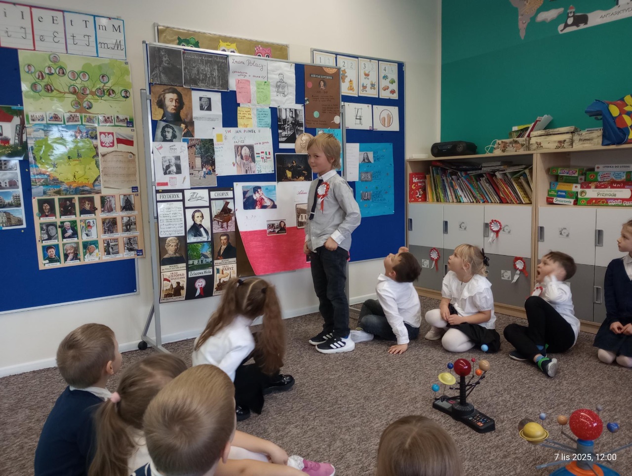 Odwrócona lekcja w grupie 0A - dzieci przedstawiają znanych Polaków