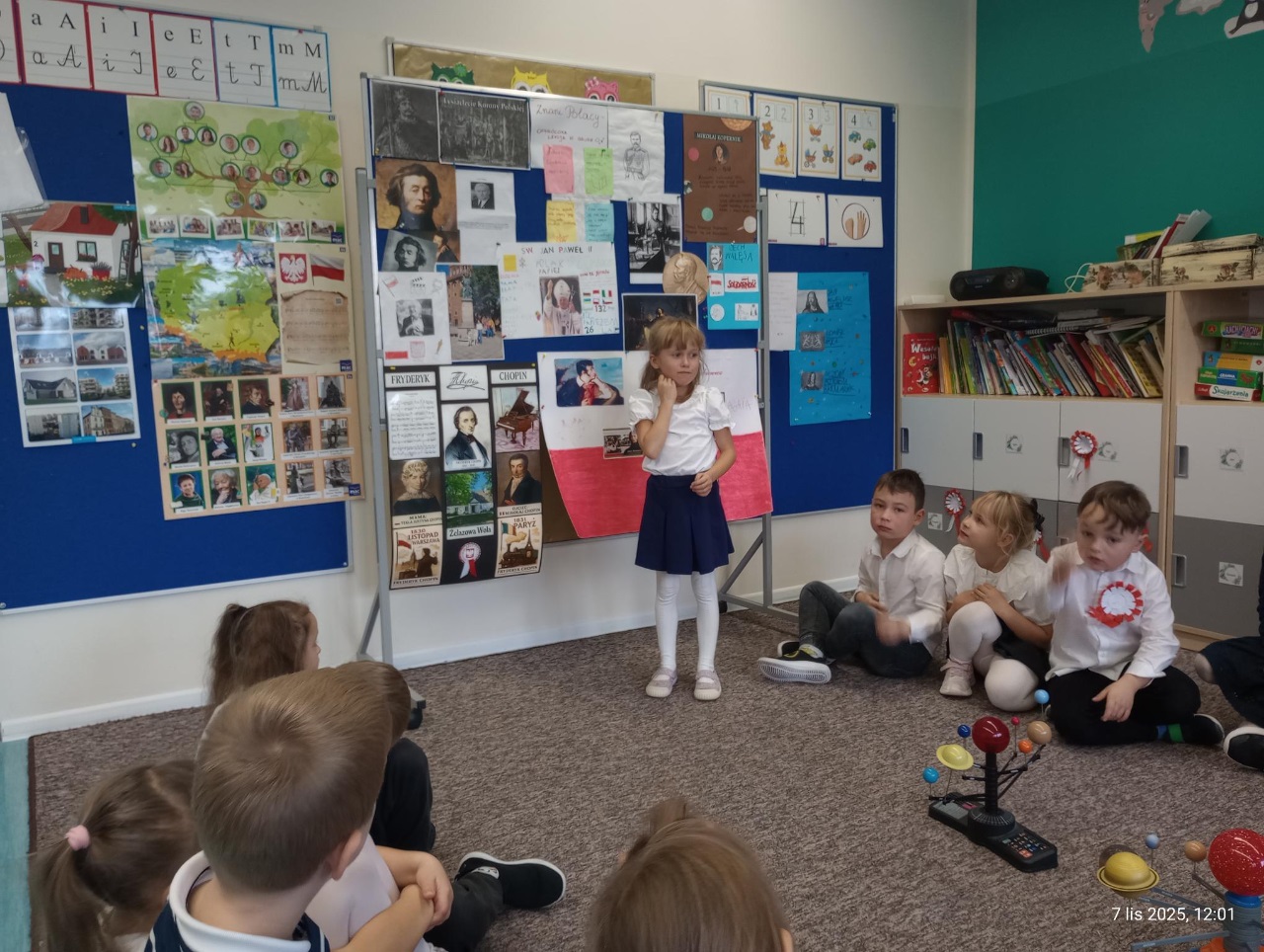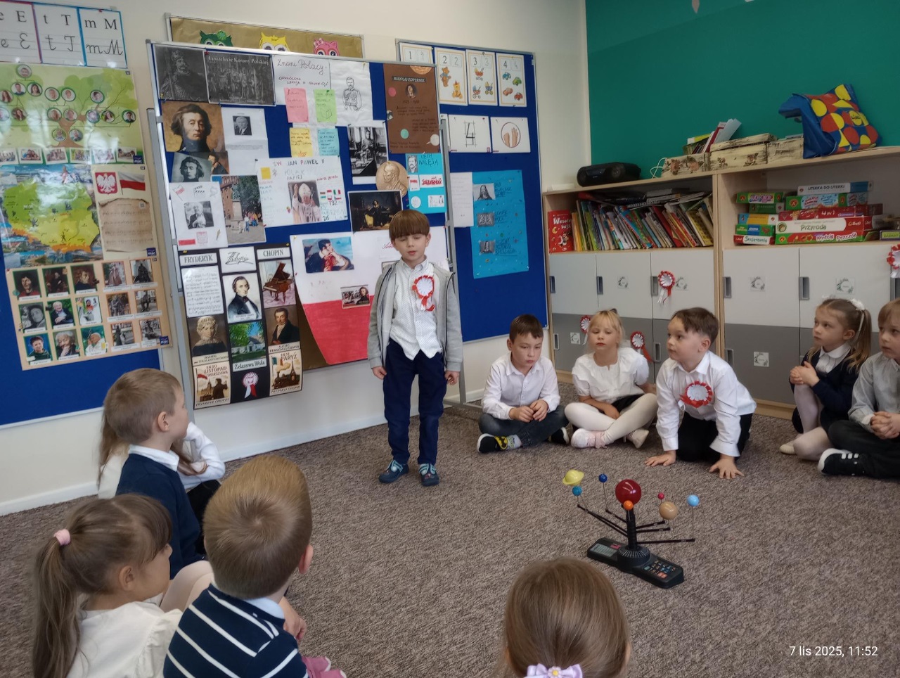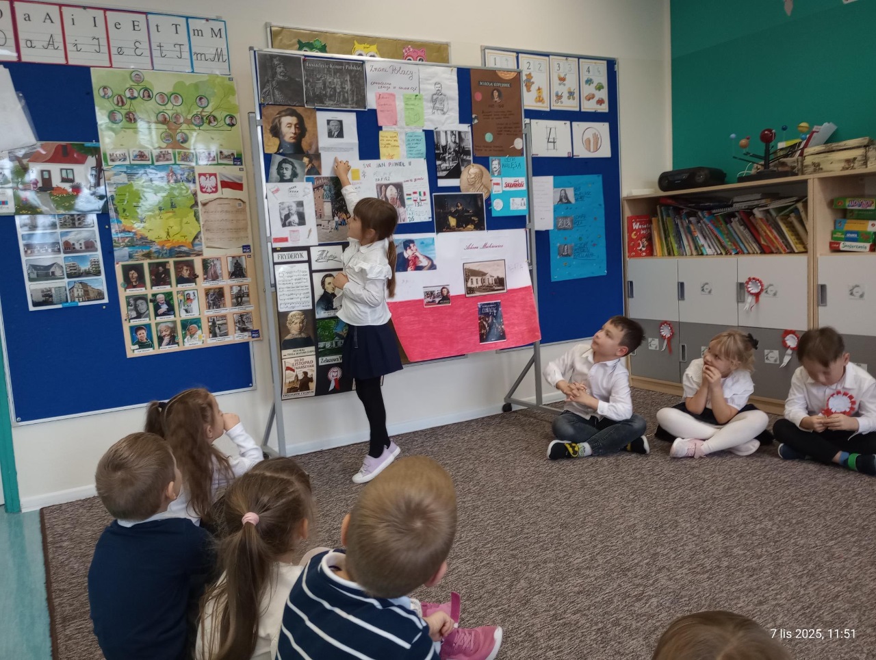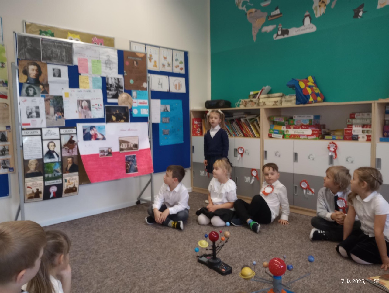 Odwrócona lekcja w grupie 0A - dzieci przedstawiają znanych Polaków