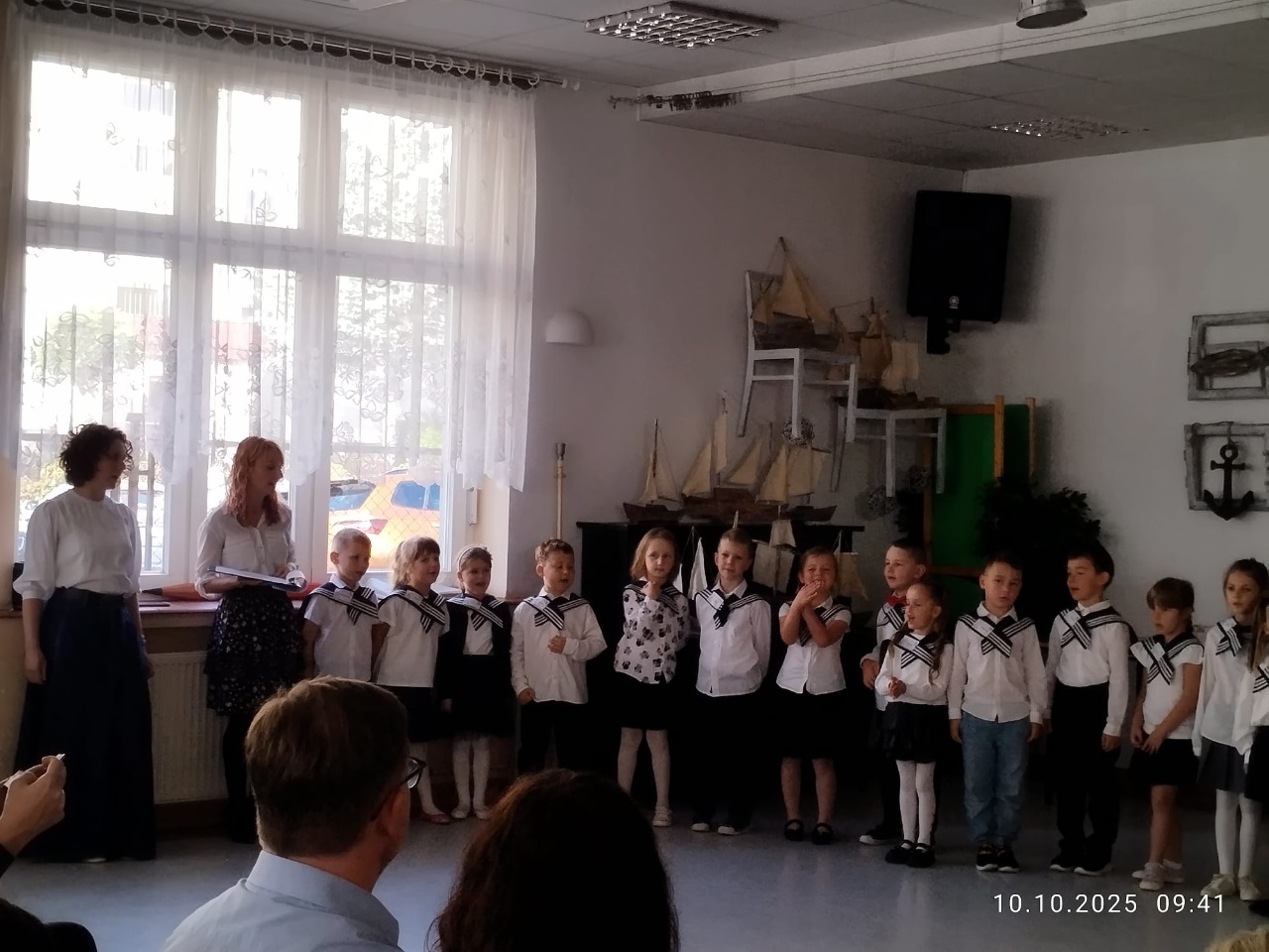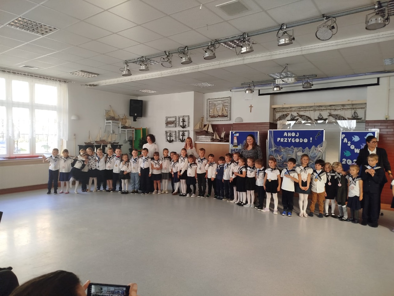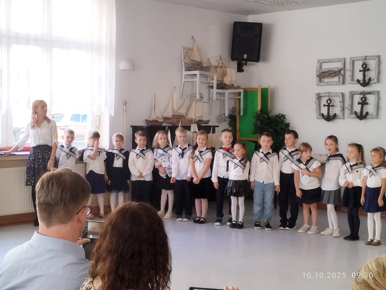 Najmłodsi uczniowie wyruszyli w swoją pierwszą, szkolną podróż po oceanie wiedzy. W towarzystwie Dyrekcji, Rodziców i Nauczycieli zaprezentowali piękny program artystyczny – były piosenki i wiersze które pozwoliły wszystkim poczuć się jak na prawdziwym statku szkolnym.