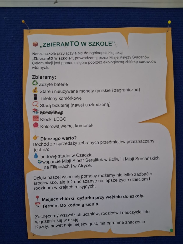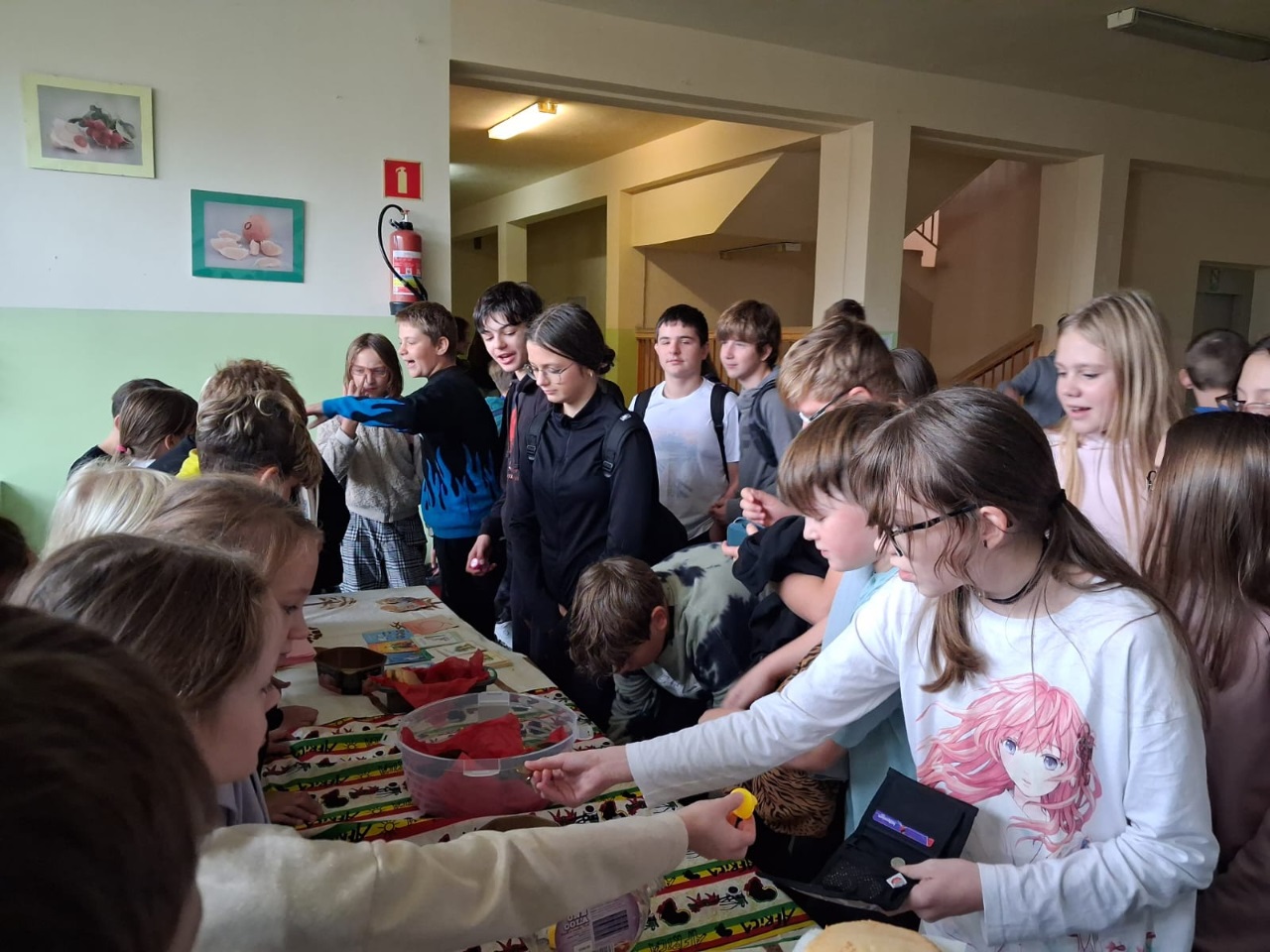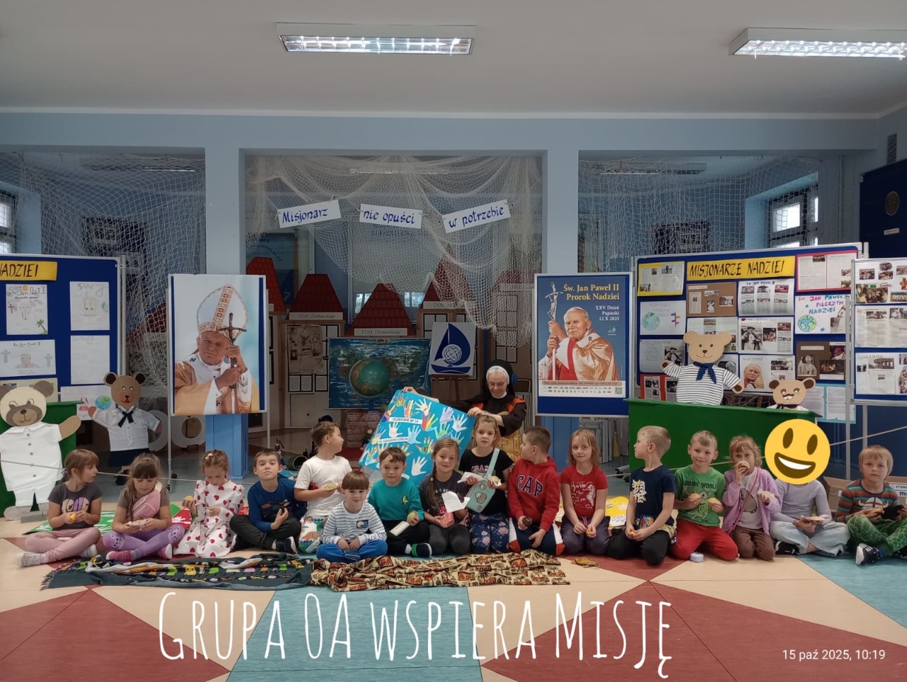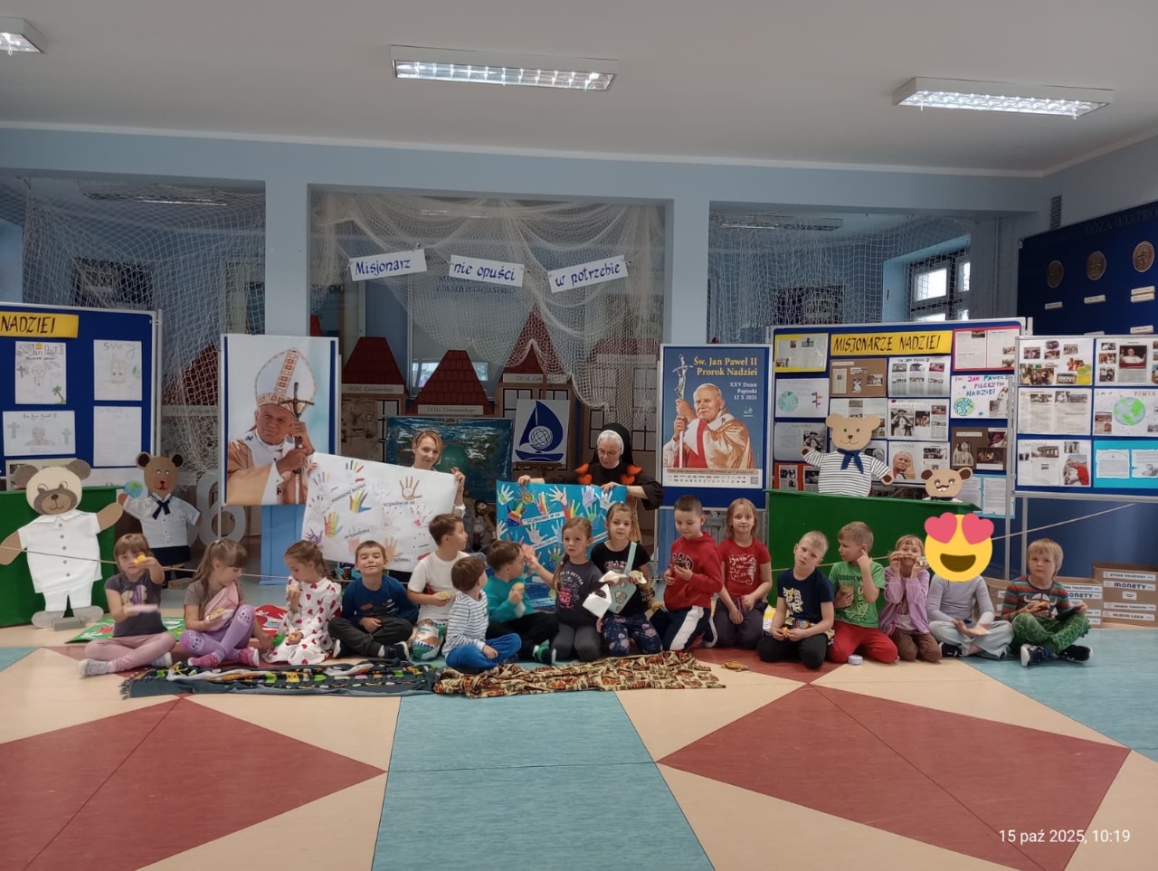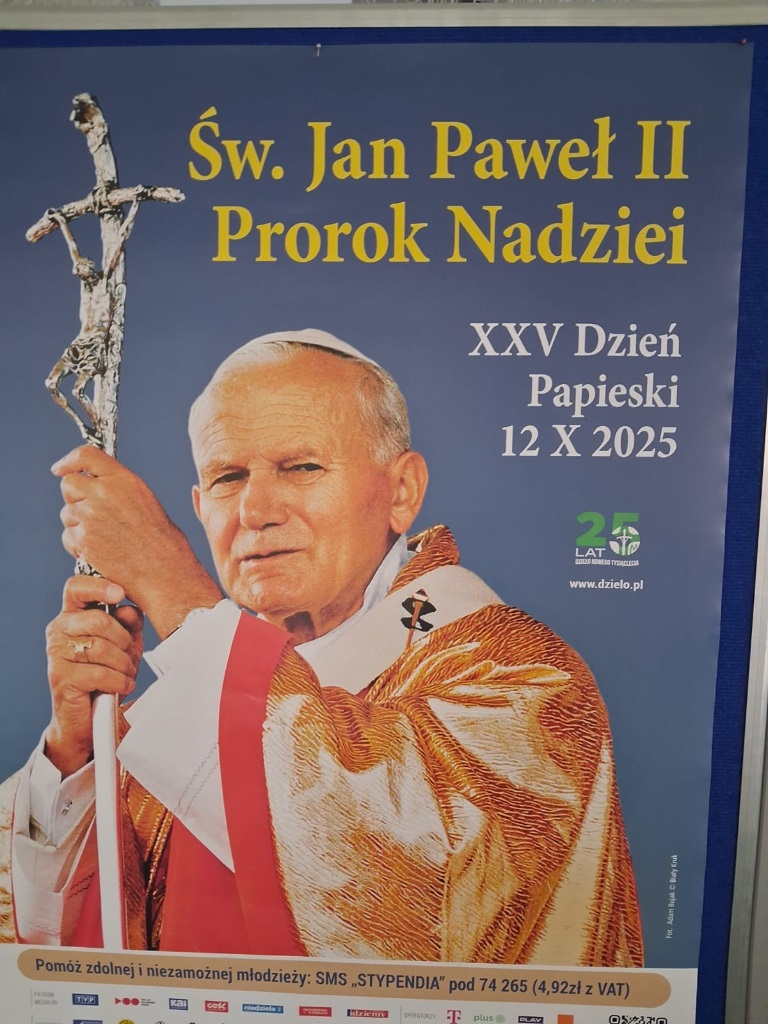 Podczas długich przerw uczniowie mogli sprawdzić swoją wiedzę o św. Janie Pawle II biorąc udział w krótkich quizach i zabawach. Za poprawne odpowiedzi czekała słodka nagroda. W atmosferę wydarzenia pięknie wpisały się plakaty i dekoracje misyjne przygotowane przez uczniów. Szczególną uwagę przyciągały prace z wizerunkiem św. Jana Pawła II, które stały się wyrazem pamięci i szacunku dla Papieża Polaka.