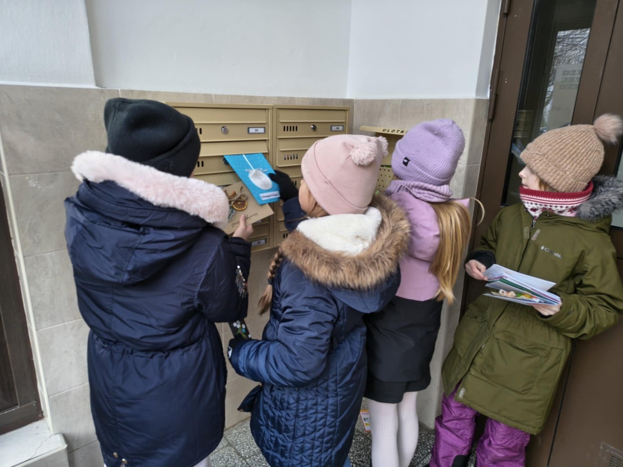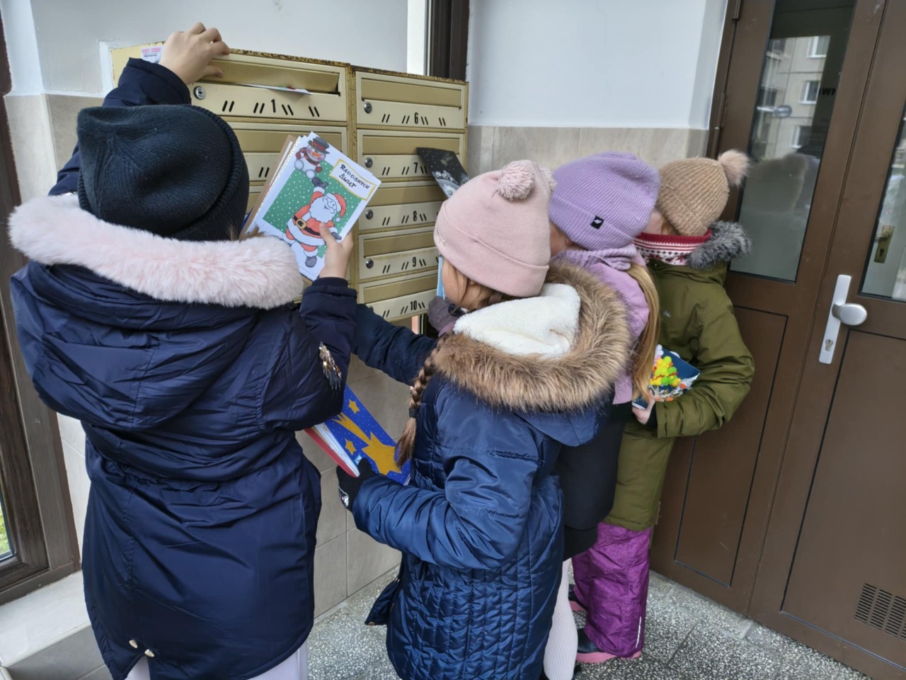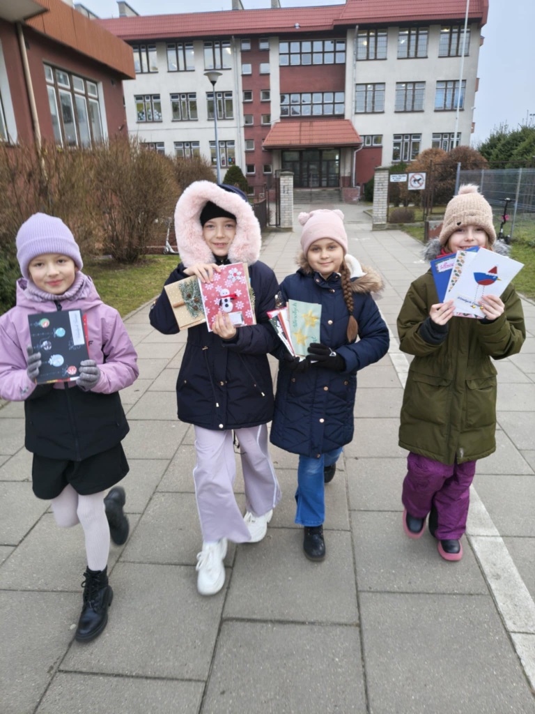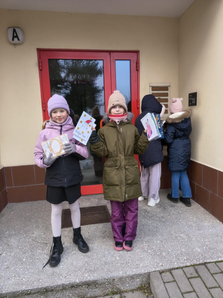 Dzieci ze świetlicy szkolnej już po raz kolejny udowodniły, że magia Świąt Bożego Narodzenia tkwi przede wszystkim w dzieleniu się dobrem. W ramach świątecznej akcji uczniowie przygotowali własnoręcznie kartki bożonarodzeniowe z życzeniami, które następnie wrzucali do skrzynek pocztowych mieszkańców naszego osiedla. Każda kartka była wyjątkowa – powstała w domach dzieci, podczas wspólnie spędzonego czasu z rodziną, pełnego rozmów, śmiechu i świątecznej atmosfery.