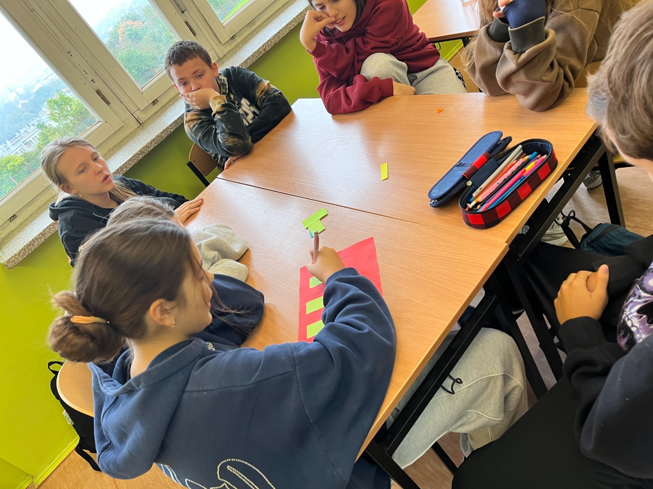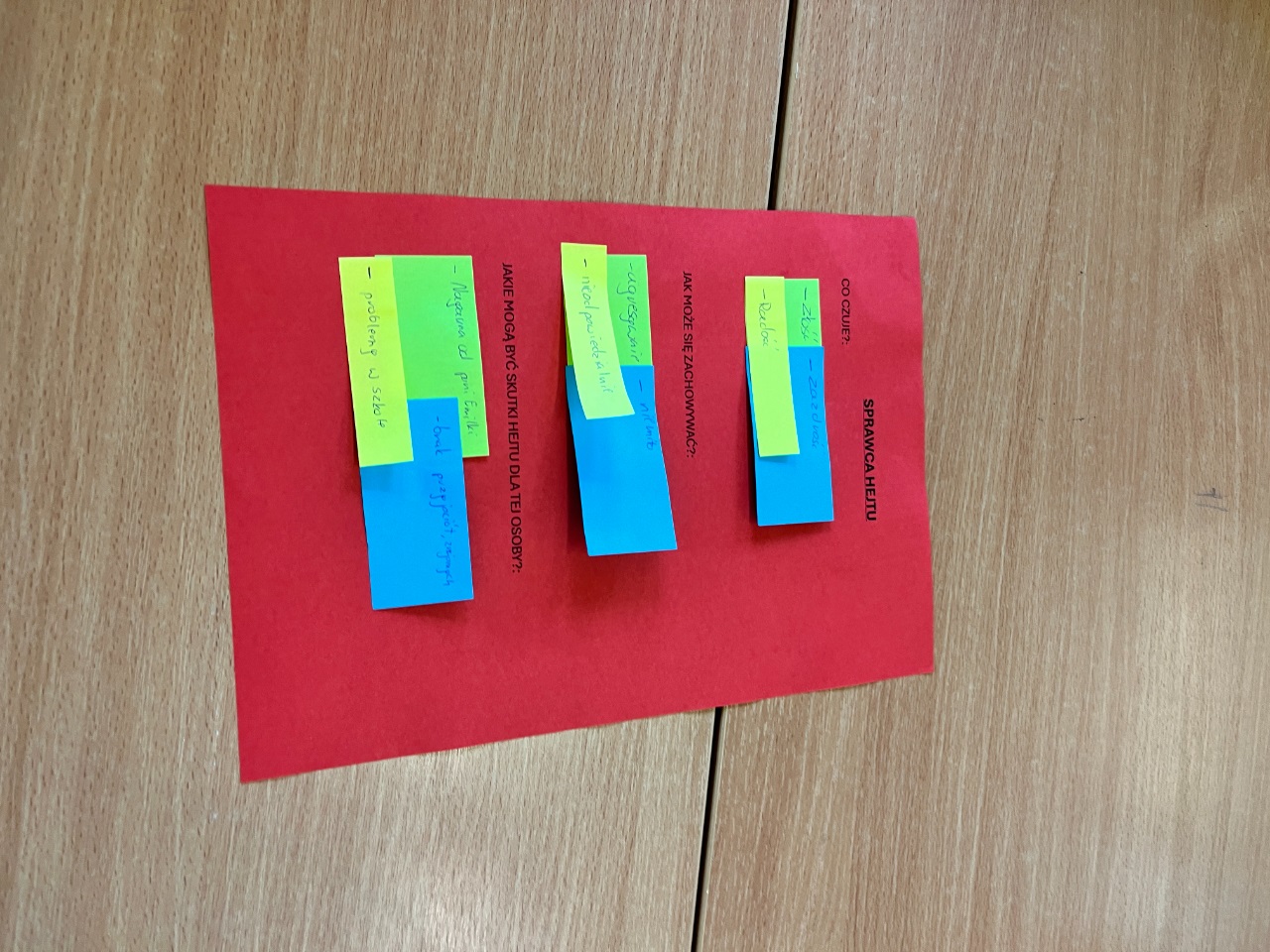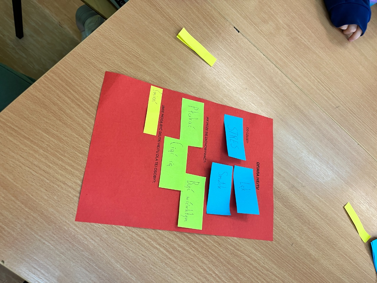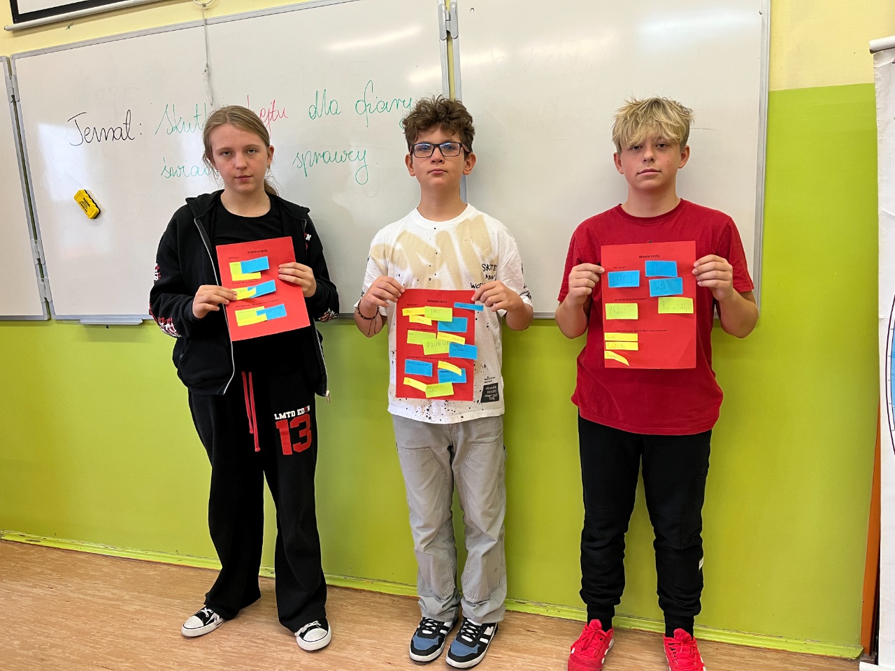 Uczniowie kl. 6b, jak co tydzień, wzięli udział w warsztatach w ramach innowacji "Stop hejt! Słowa mają moc", pracowali w grupach nad skutkami hejtu dla ofiary, świadka i sprawcy. Dzięki wspólnym dyskusjom i zadaniom dzieci zrozumiały, jak ważne są słowa i zachowania wobec innych. Klasa 6b kontynuuje tę tematykę przez cały rok szkolny 2025/2026, zgłębiając kolejne tematy i rozwijając umiejętności radzenia sobie w różnych sytuacjach. Świetna współpraca i zaangażowanie wszystkich uczestników!