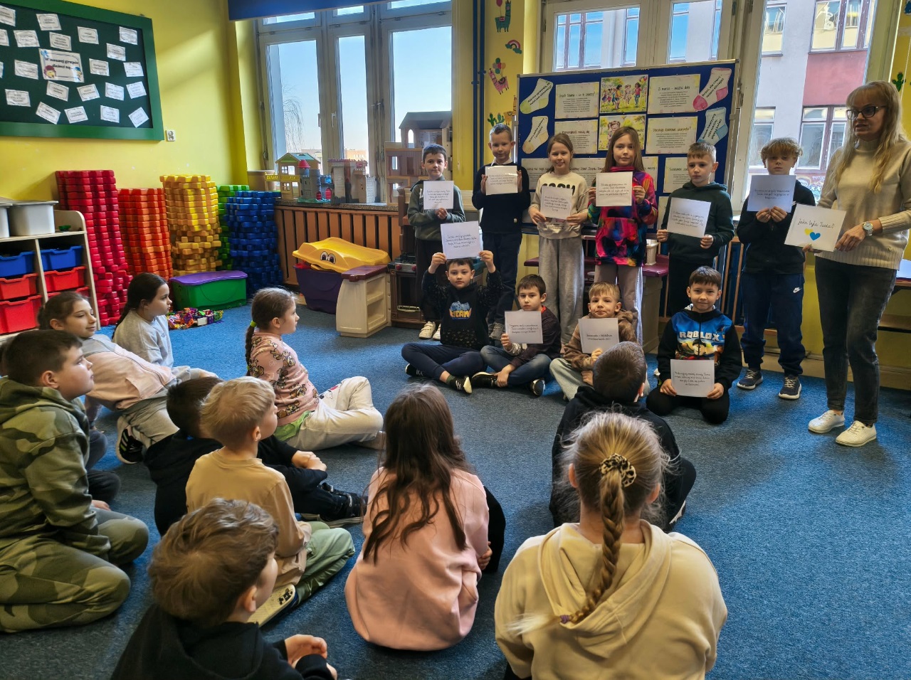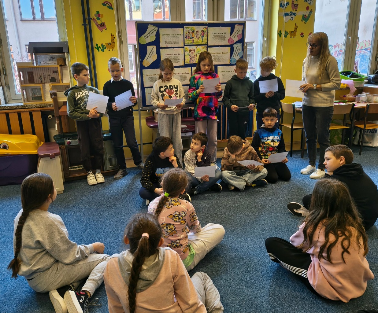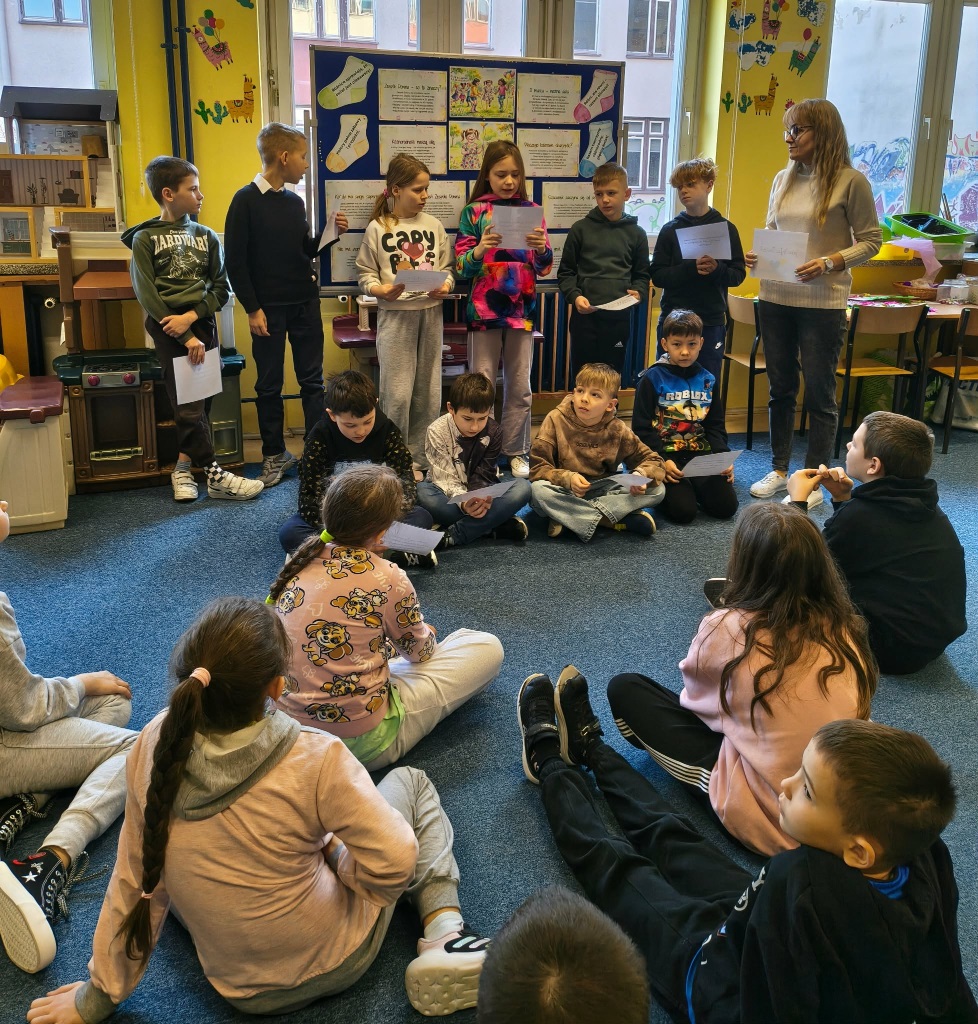 Również i w tym roku w naszej świetlicy dla klas trzecich zostały przeprowadzone zajęcia mające na celu przybliżenie dzieciom informacji na temat osób urodzonych z tą wadą genetyczną. Na początku obejrzeliśmy krótki film edukacyjny pt. „Zespół Downa - wyjątkowe dzieci”, który pozwolił nam zrozumieć przyczynę powstania tej wady. Przeczytaliśmy również krótkie opowiadanie, którego bohaterką była dziewczynka z zespołem Downa o imieniu Zosia. W czasie zajęć dzieci rozmawiały na temat różnorodności, wyjątkowości, integracji oraz wsparcia, jakiej potrzebują ludzie dotknięci tą wadą.