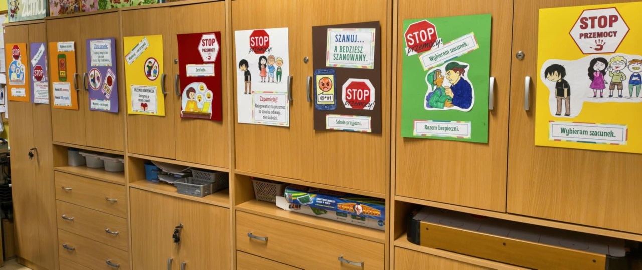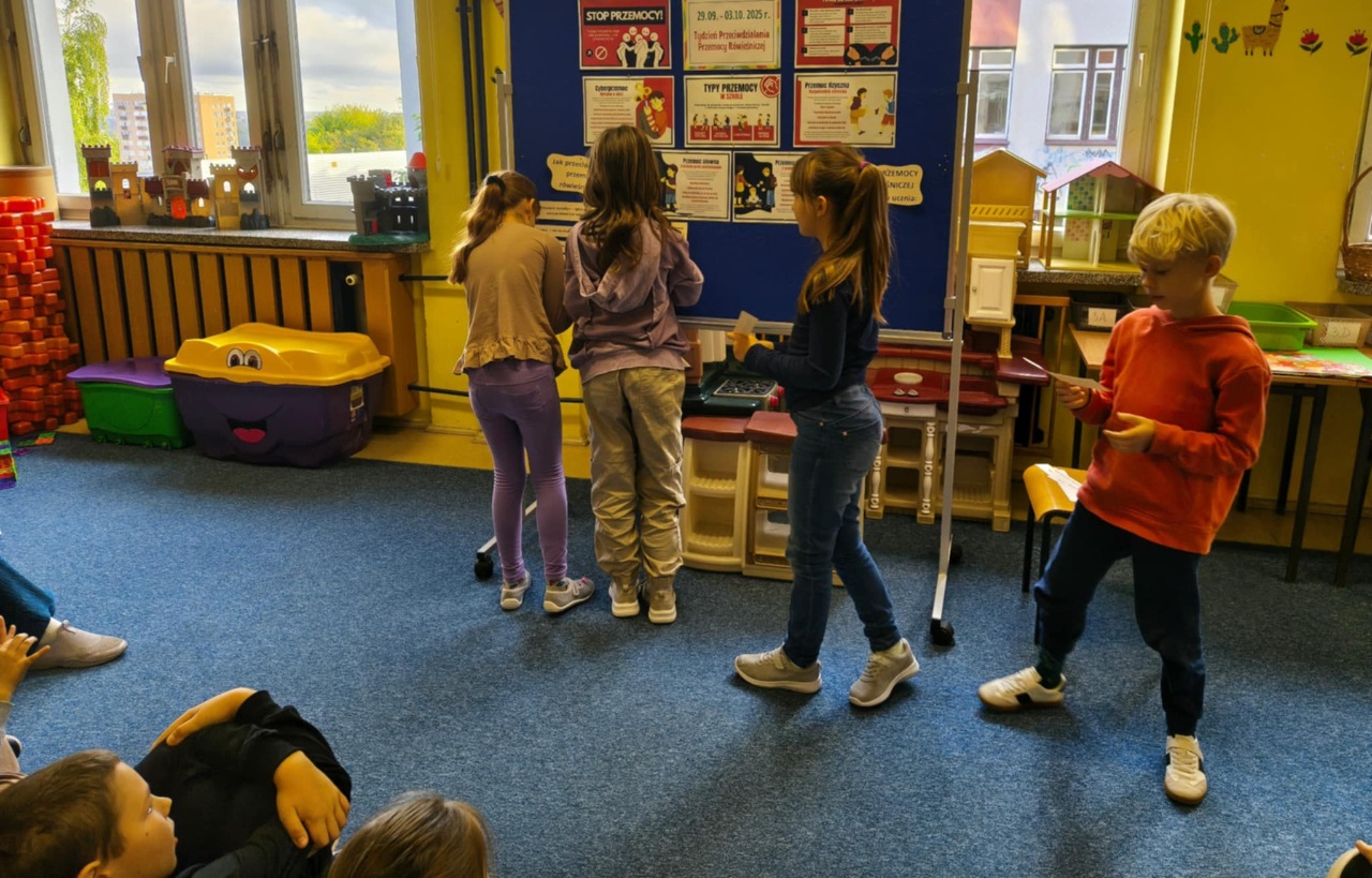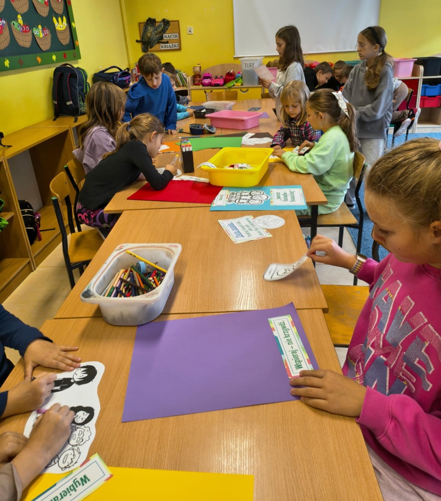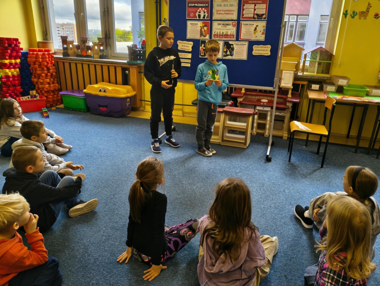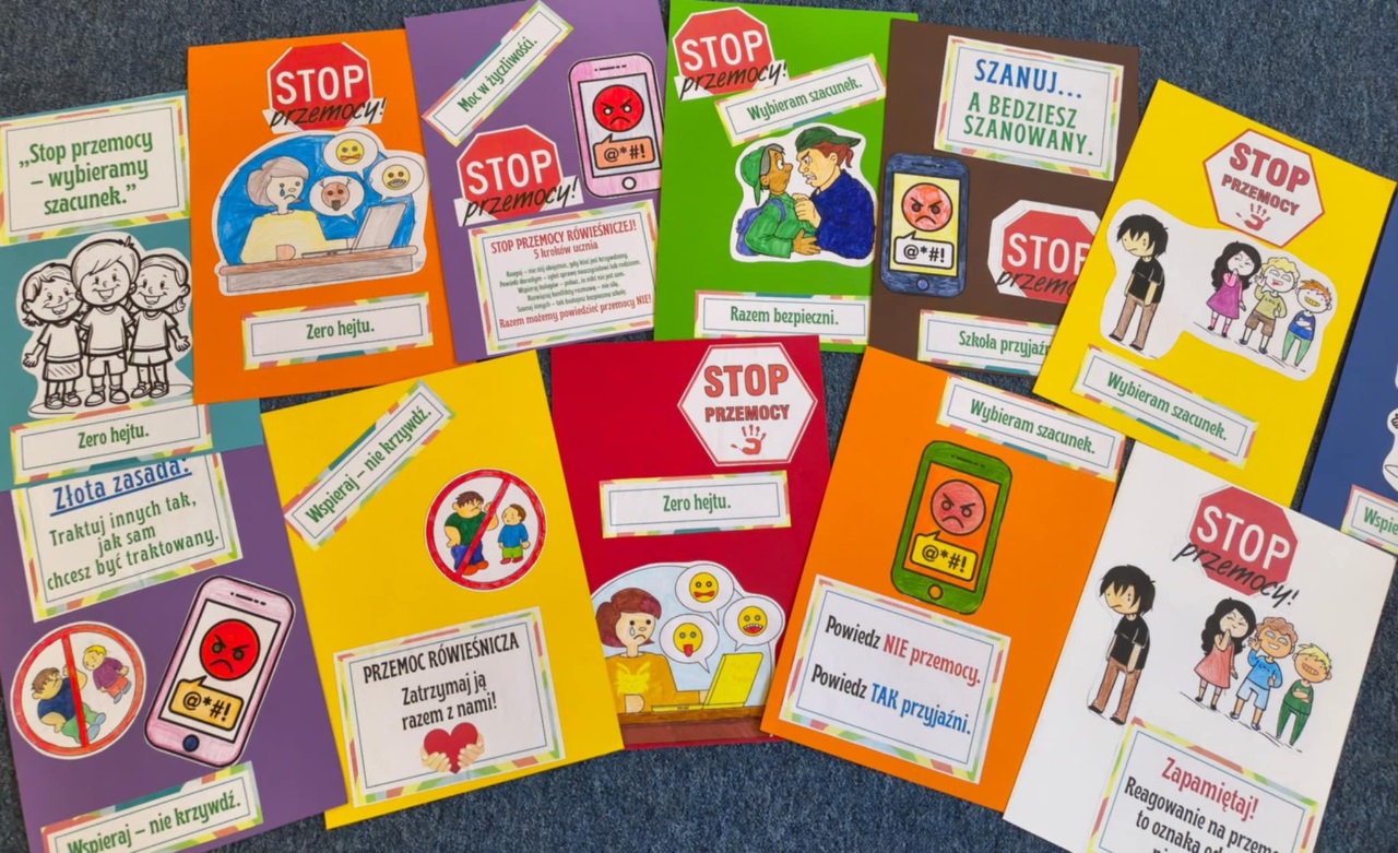 W dniach 29 września – 3 października w świetlicy klas trzecich organizowaliśmy zajęcia pod hasłem „Tydzień o przeciwdziałaniu przemocy rówieśniczej”. Zajęcia miały na celu uświadomienie każdemu dziecku, że nie musi godzić się na ośmieszanie, wykluczanie czy przemoc, a po pomoc można sięgać bez wstydu i strachu. Wspólnie z dziećmi rozmawialiśmy o rodzajach tej przemocy oraz o tym, jak jej przeciwdziałać. Dzieci zgodnie stwierdziły, że w naszej szkole chcą się kierować ZŁOTĄ ZASADĄ: TRAKTUJ INNYCH TAK, JAK SAM CHCESZ BYĆ TRAKTOWANY. Na koniec zajęć uczniowie wykonali plakaty informacyjne dotyczące przeciwdziałania przemocy rówieśniczej, które powiesiliśmy w naszej świetlicy. Wspólnie mówimy – NIE DLA PRZYMOCY!