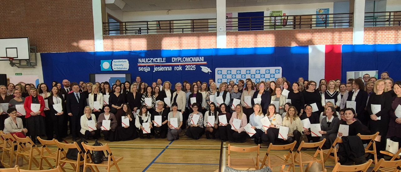 27 listopada 2025 r. o godzinie 12.00 odbyła się po raz pierwszy w naszej szkole gala wręczenia Aktów nadania stopnia awansu zawodowego nauczyciela dyplomowanego. Uroczyste dokumenty w sesji jesiennej 2025 odebrali nauczyciele z miast: Gdańsk, Gdynia, Sopot, Tczew oraz z powiatów: gdańskiego, kwidzyńskiego, malborskiego, nowodworskiego, puckiego, sztumskiego, tczewskiego i wejherowskiego.