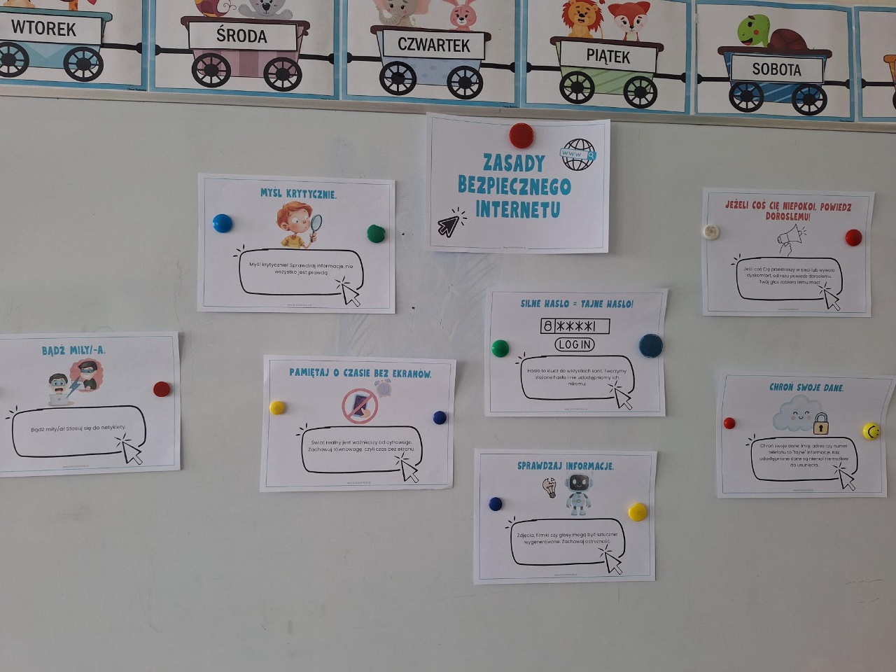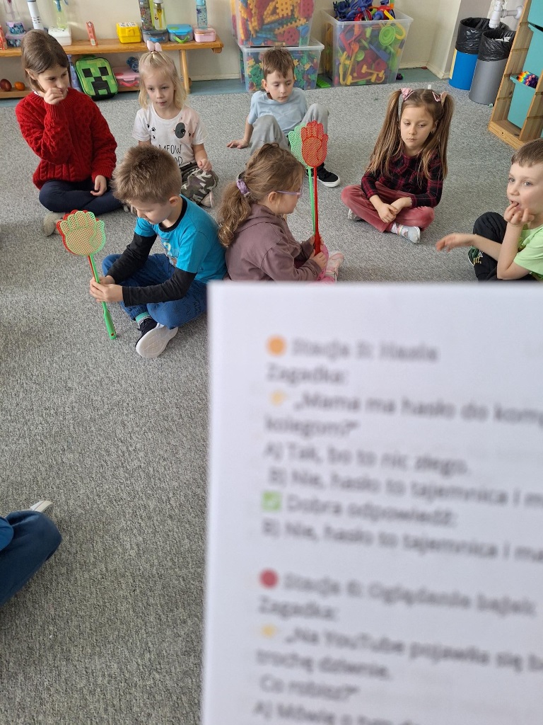 W naszej Zerówce odbyły się wyjątkowe zajęcia w wyjątkowy dzień - Dzień Bezpiecznego Internetu. Razem z bohaterem wykreowanym przez Misiową Mamę, zerowkowicze wyruszyły w podróż po cyfrowym świecie, by dowiedzieć się, jak bezpiecznie korzystać z internetu. Dzieci wysłuchały opowiadania o Małym Misiu, na podstawie którego rozmawialiśmy o co wolno, a czego nie należy robić, by bezpiecznie korzystać z elektroniki. Stworzyliśmy również kodeks właściwego korzystania z internetu. Podsumowaniem zajęć była zabawa prawda- fałsz utrwalająca poznane zasady, a także praca plastyczna, która miała pokazać, że elektronika nie może nam przesłonić zabawy i świeżego powietrza. Wierzymy, że edukacja od najmłodszych lat to najlepsza inwestycja w bezpieczeństwo dzieci. Choć świat online oferuje mnóstwo zabawy i nauki, kryje też wyzwania, a naszym celem było wyposażenie dzieci w "cyfrowy kompas".