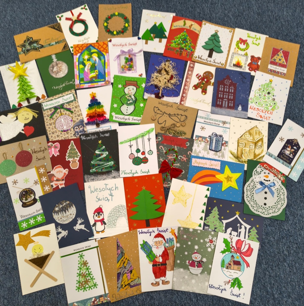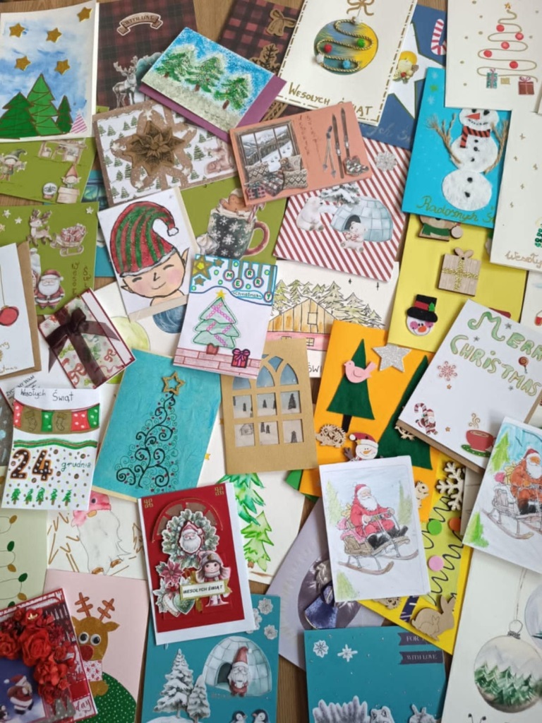 Już po raz czwarty w naszej szkole ogłoszona została akcja WSZYSCY WSZYSTKIM ŚLĄ ŻYCZENIA. W tym roku wzięły w niej udział dzieci ze świetlicy klas 1-3 wraz ze swoimi rodzinami, uczniowie klasy 3A oraz uczniowie ze Szkolnego Koła Wolontariatu z klas 4-8. Wpłynęło do nas ponad 700 sztuk przepięknych kartek i każda z nich miała swoje szczególne przeznaczenie. Nasze kartki wraz z pięknymi życzeniami zostały rozesłane po całej Polsce, aby nieść radość obarowanym. Trafiły między innymi do podopiecznych gdańskich Domów Pomocy Społecznej oraz pacjentów ZOL; Domu Opieki „Złota Jesień”; Ośrodka rewalidacyjno-wychowawczego „Żuławski Słonecznik”; Nadbużańskiego Oddziału Straży Granicznej im. 27 Wołyńskiej Dywizji Armii Krajowej; Podlaskiego Oddziału Straży Granicznej i w wiele, wiele innych miejsc.