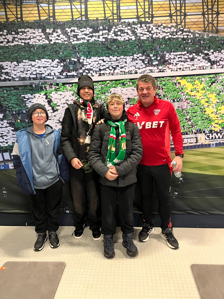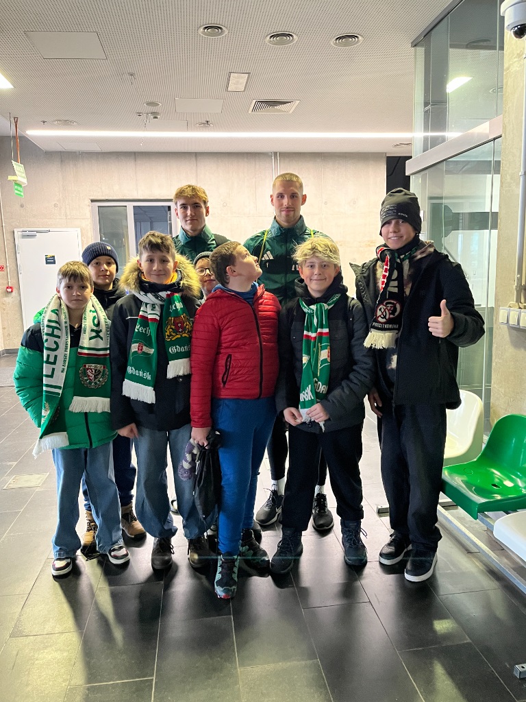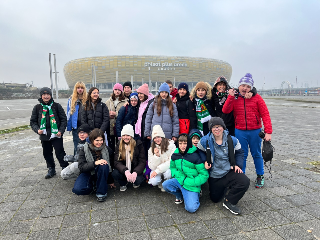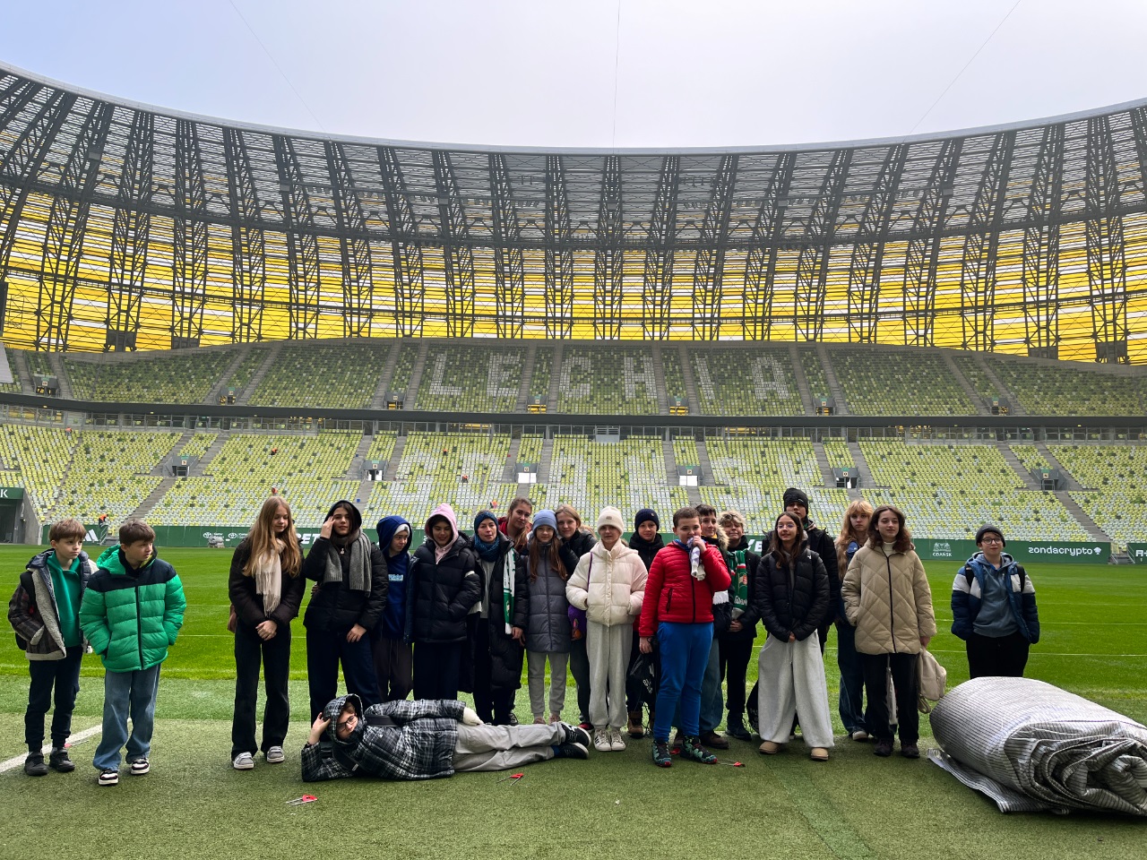 W piątek, 25.11.2025r. klasa 6b odwiedziła Polsat Plus Arenę Gdańsk, co było szczególnym przeżyciem zwłaszcza dla uczniów – wiernych kibiców Lechii Gdańsk. Podczas zwiedzania stadionu dzieci zajrzały do szatni, strefy zawodników i na murawę. Największą radość sprawiły dzieciom pamiątkowe zdjęcia trenerem i piłkarzami.
