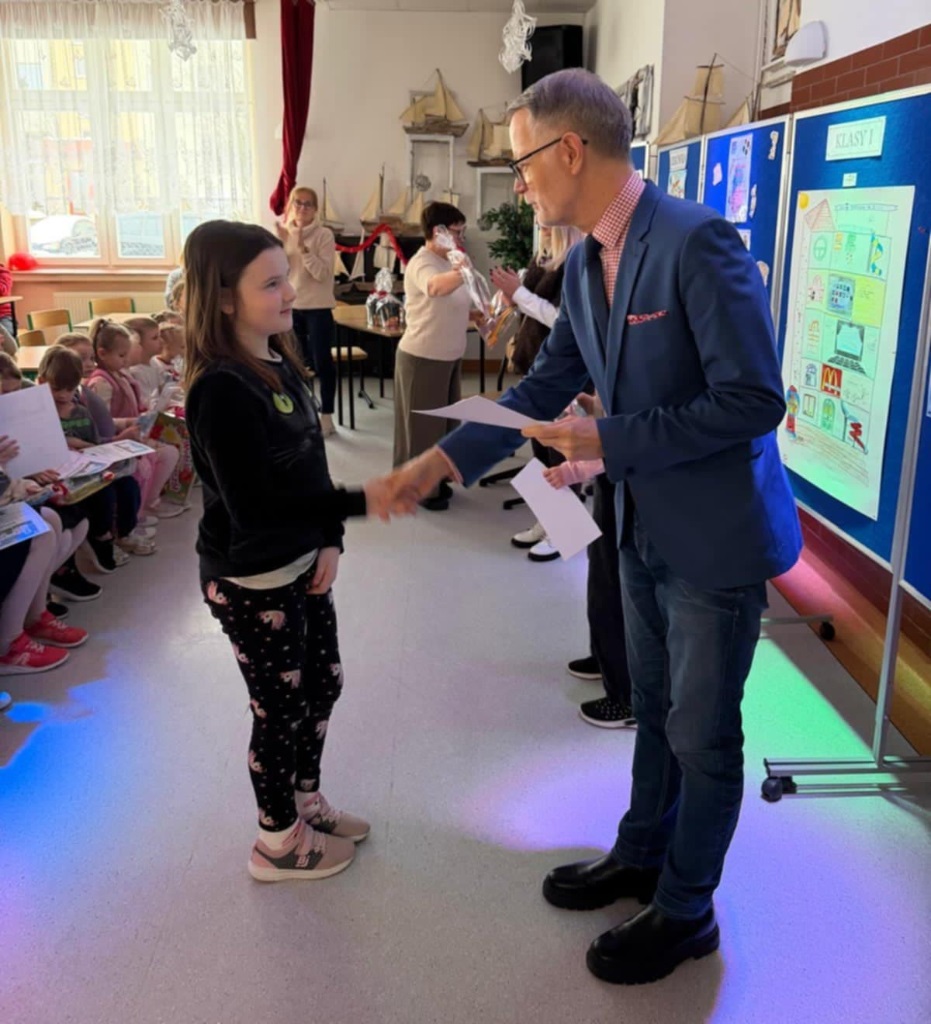 23 lutego odbyło się uroczyste wręczenie nagród. Dyplomy oraz upominki laureatom konkursu wręczyli pan dyrektor szkoły Krzysztof Dudek oraz pani wicedyrektor Marzena Turowska.